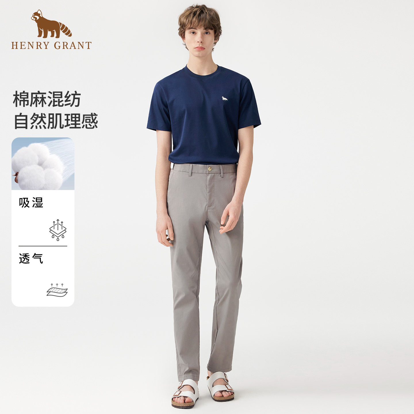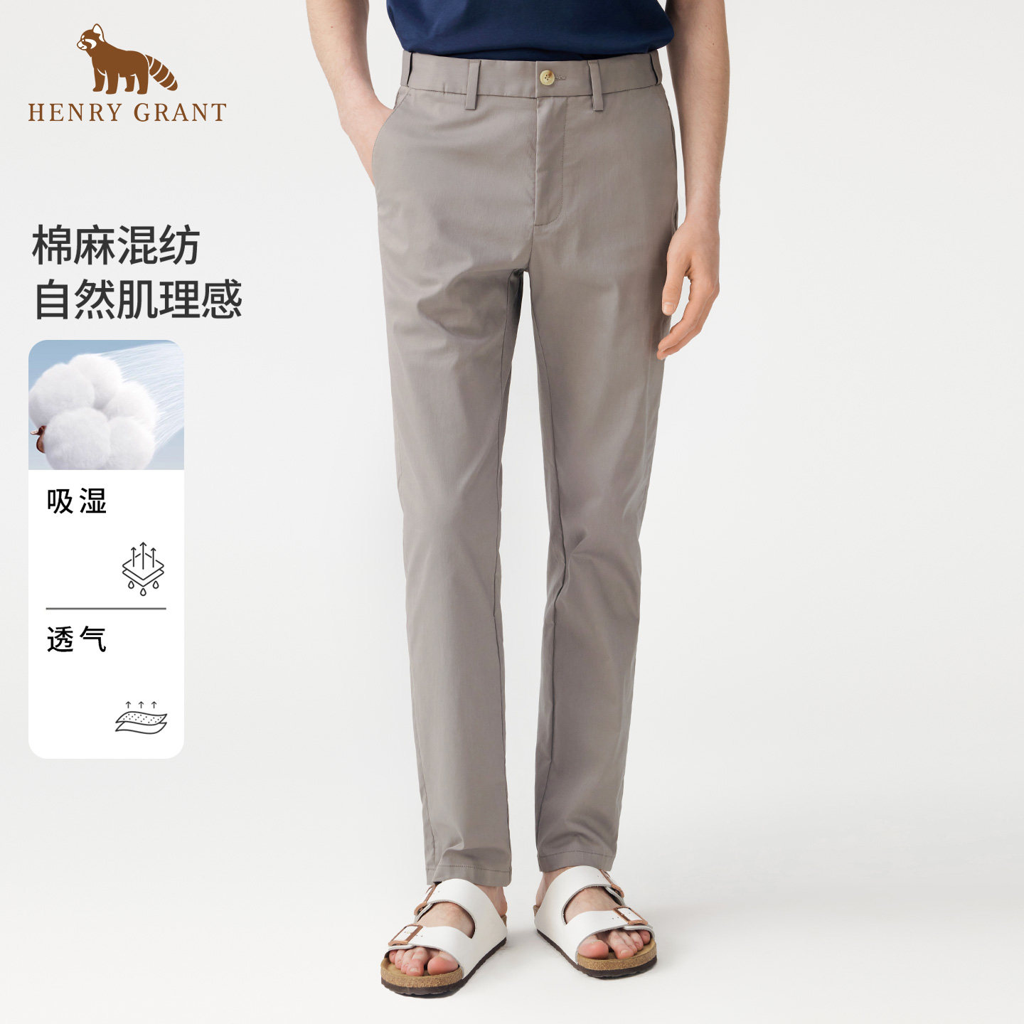 【棉麻混纺】亨利格兰肌理感休闲裤2026春季新款潮流百搭直筒长裤