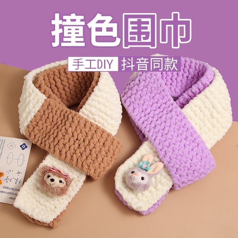 手工编织围巾diy冰条线毛线玉桂狗星黛露撞色围巾送男女朋友成品