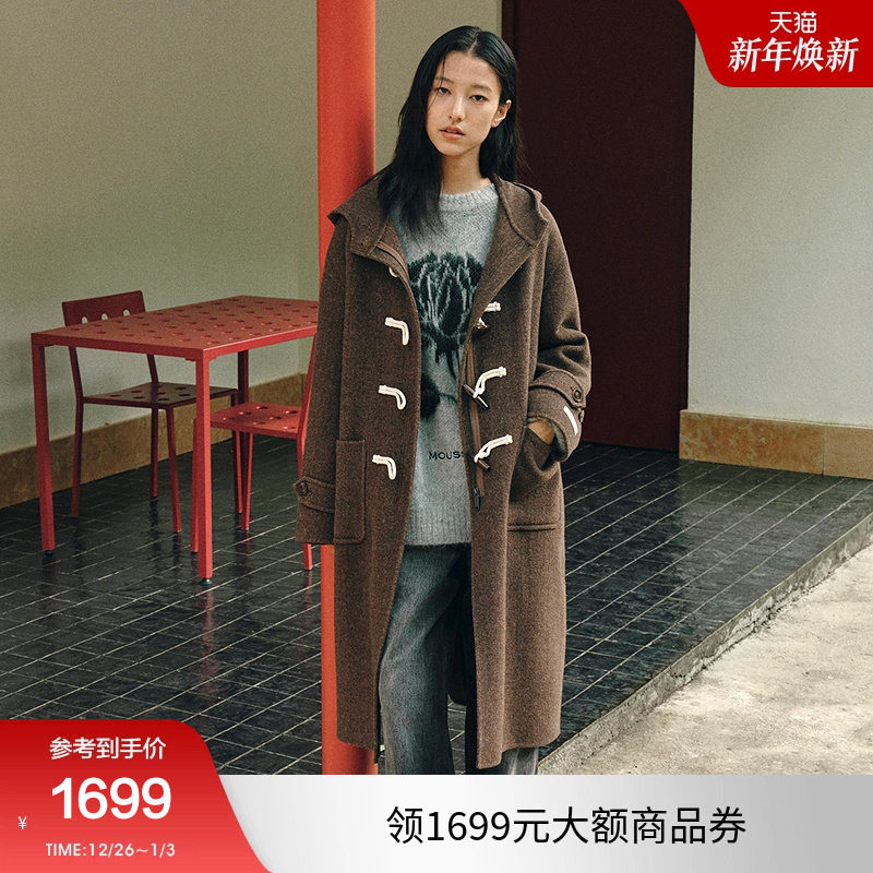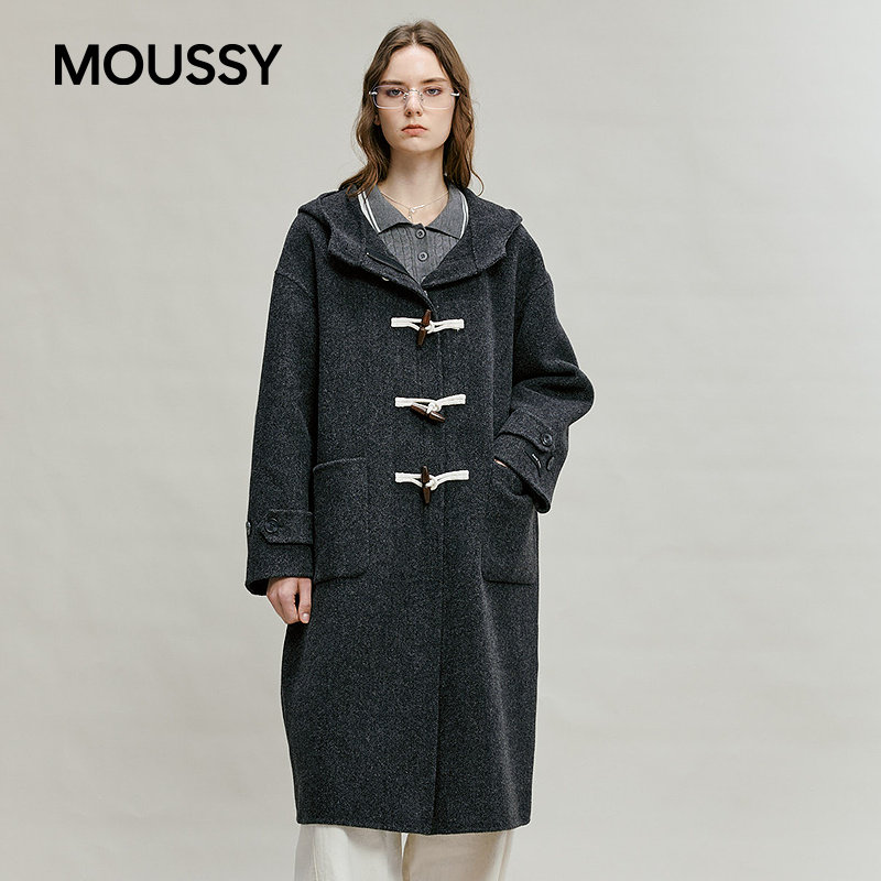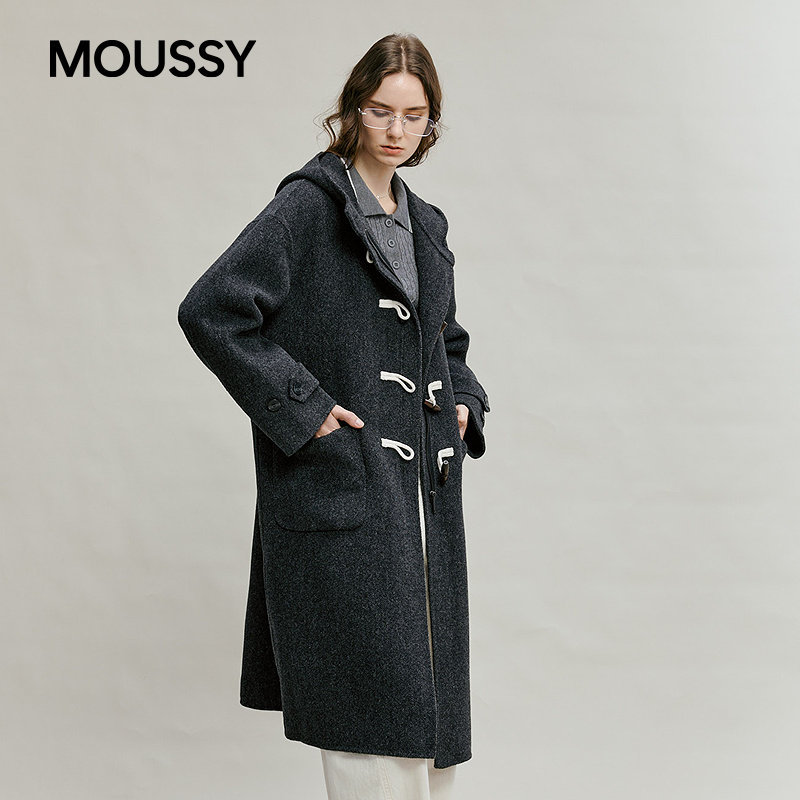MOUSSY 2025冬季新品通勤复古风牛角扣长款毛呢大衣028IAC30-1089