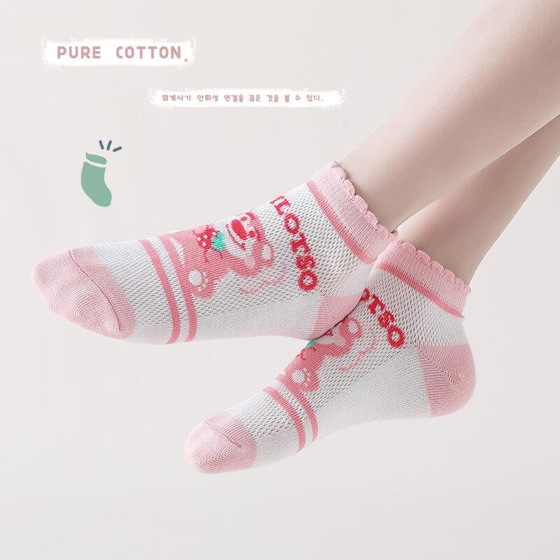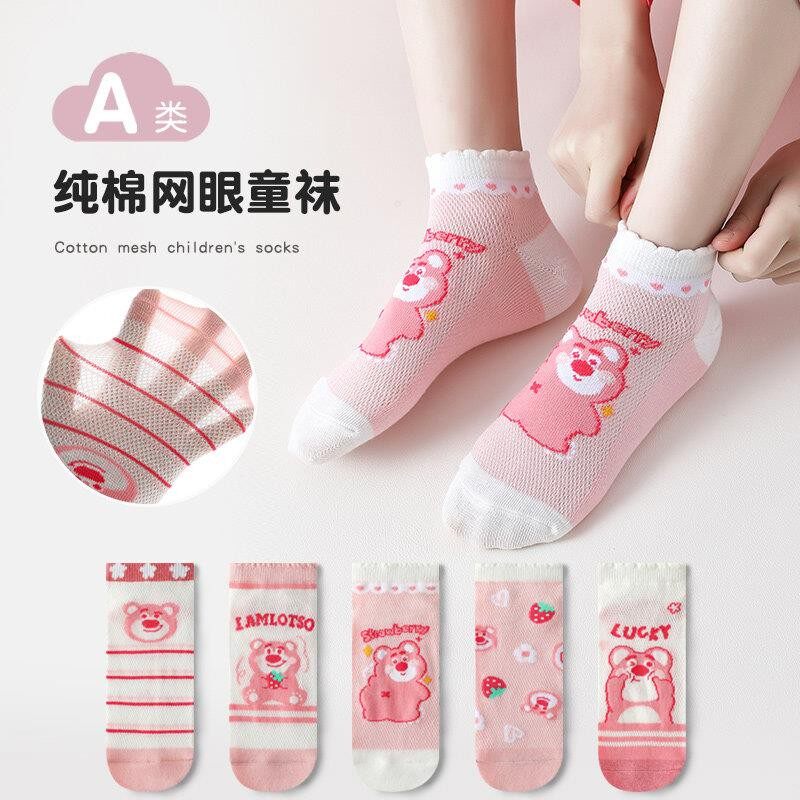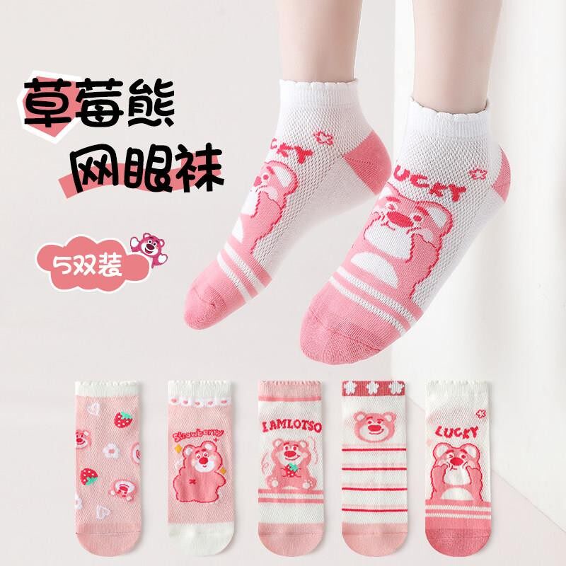女童袜子夏季薄款草莓熊卡通可爱网眼儿童小女孩宝宝春秋短袜