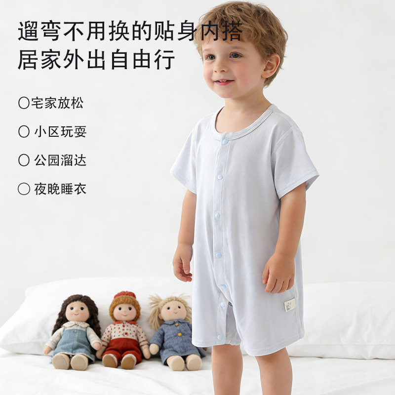 新生儿衣服夏季莫代尔短爬0-3个月宝宝空调服婴幼儿连体夏装母婴