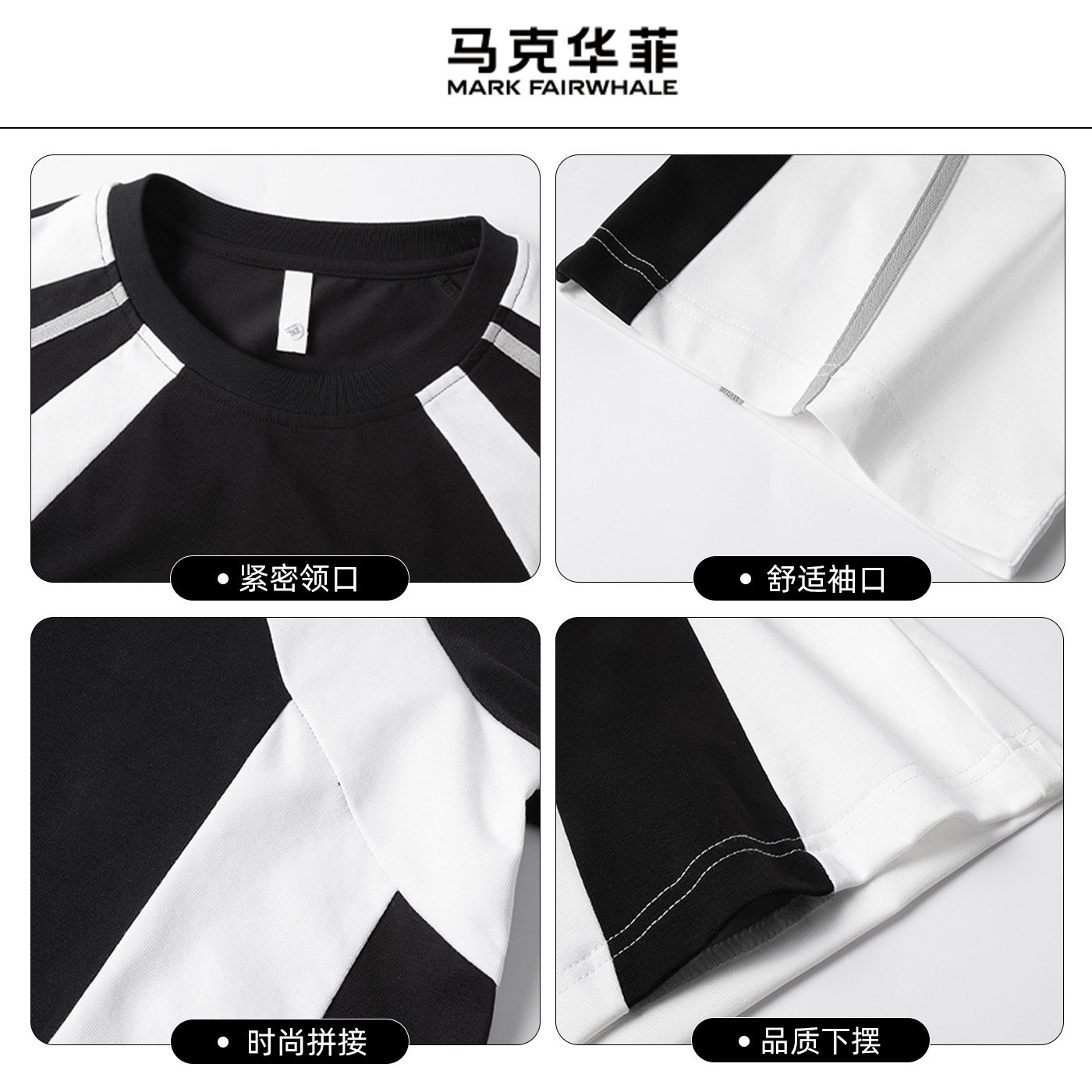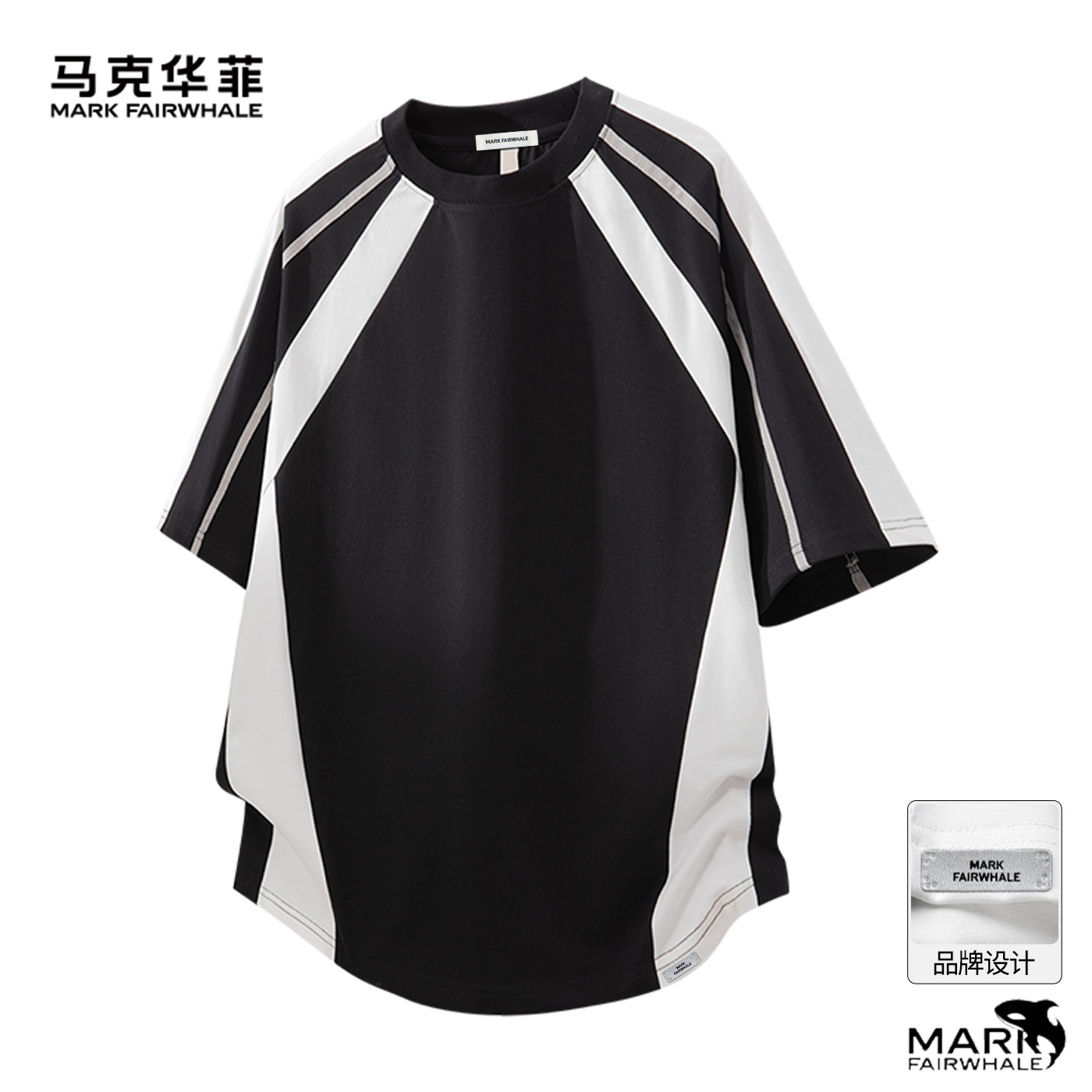 马克华菲拼接短袖2026夏季新款T恤男圆领宽松运动风凉感透气上衣Q