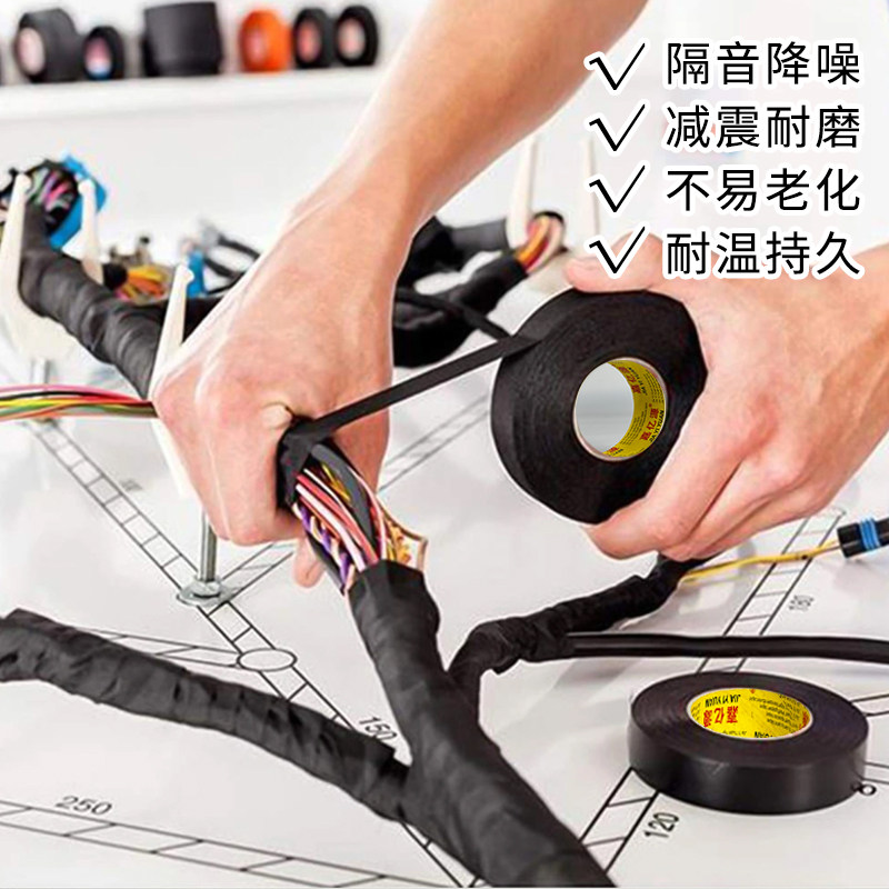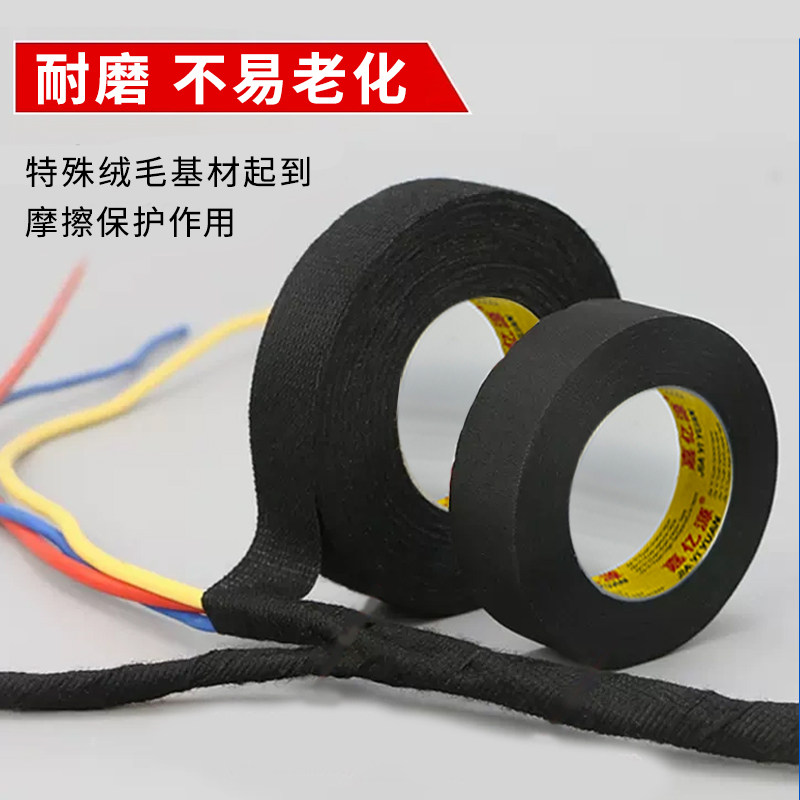 绒布胶带耐高温隔音布汽车线束胶带发动机舱缠绕线路耐磨自熄绝缘电工线速涤纶胶布消除车门静音车体摩擦异响