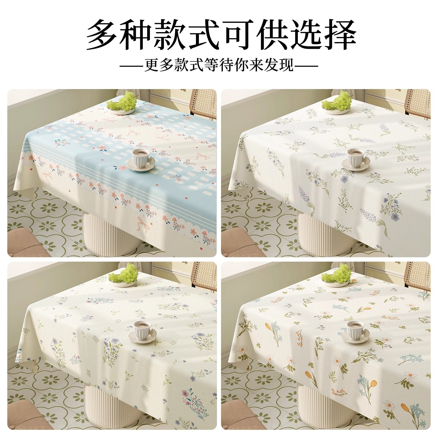 防油高级感小花桌布防水田园免洗餐桌布2025新款轻奢春季茶几桌布