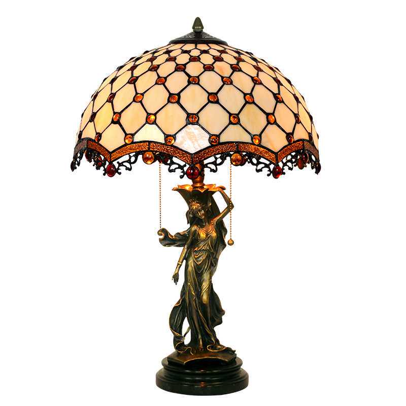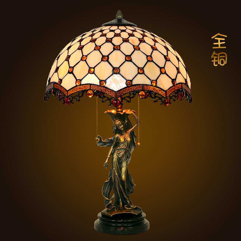 厂家直销 16寸珠帘帝凡尼宫廷复古玻璃艺术创意客厅卧室台灯全铜