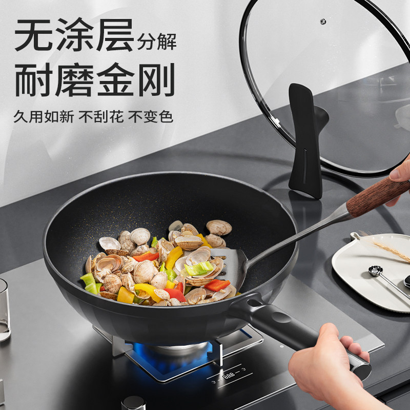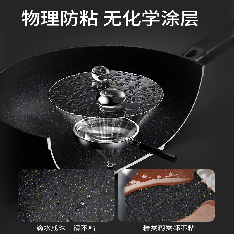 耐磨王有钛无涂层炒锅家用不粘锅平底炒菜锅不沾燃气电磁炉专用H