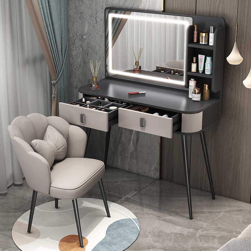 轻奢梳妆台卧室现代简约网红镜子化妆桌小型床头收纳柜书桌子一体