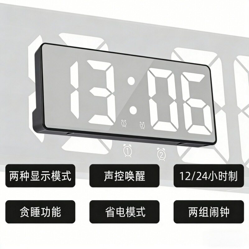 新款小闹钟客厅电视柜桌面电子时钟LED简约镜面时间显示器GR88