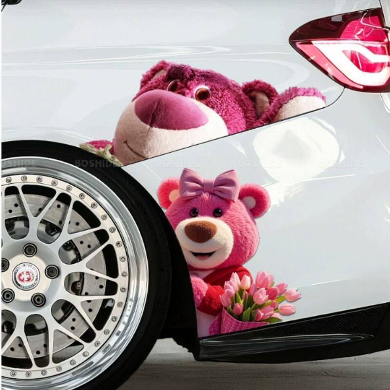 草莓熊车贴搞笑可爱卡通车身车窗电动车摩托车划痕遮挡装饰汽车贴