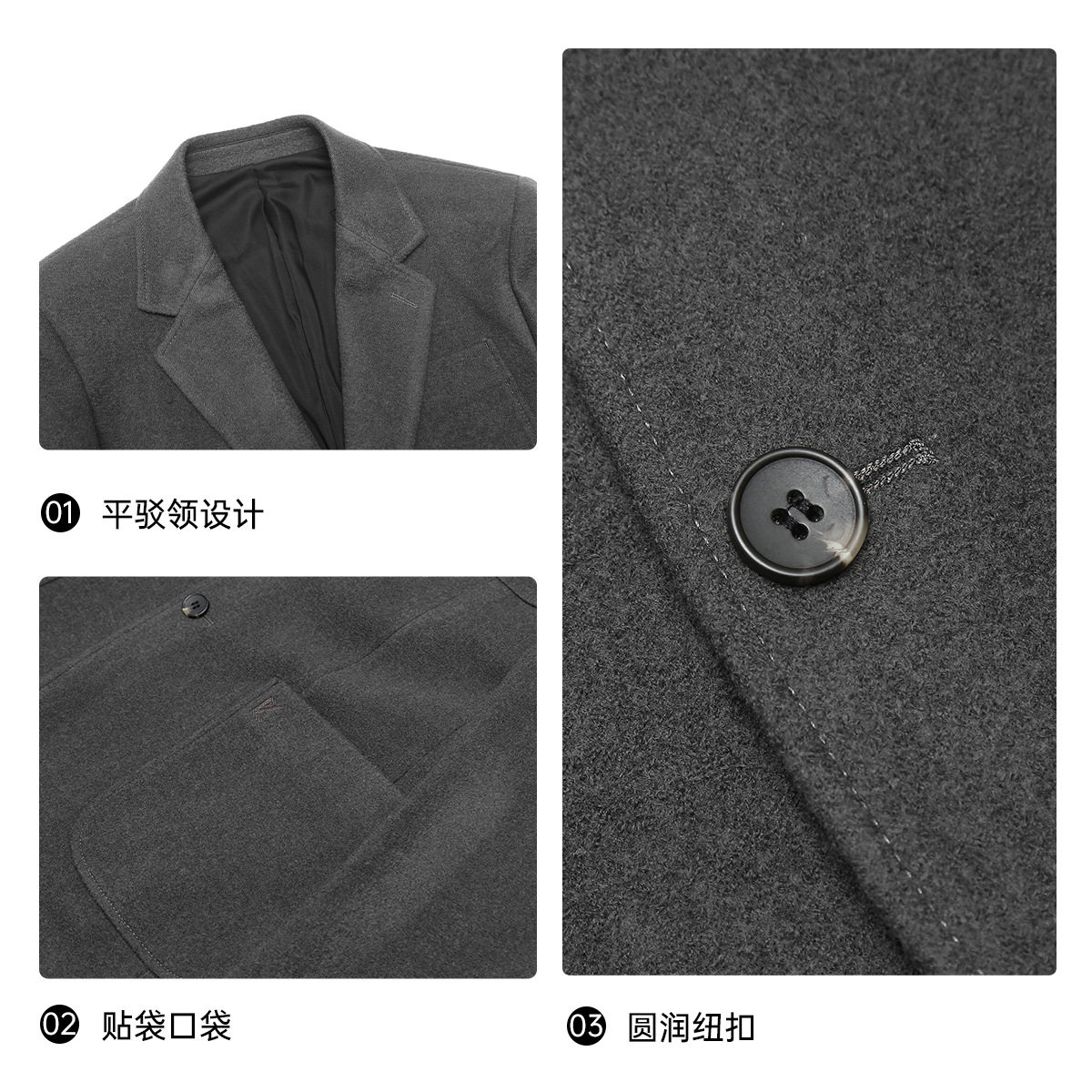 精选绵羊毛 贴袋口袋 平驳领设计