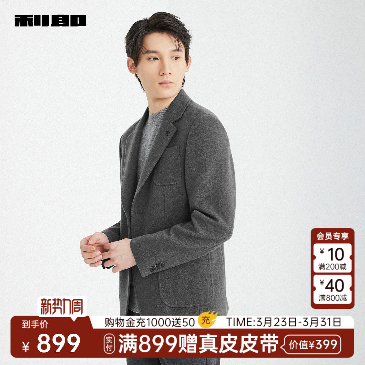 【绵羊毛】利郎官方 毛呢大衣男商务西装领冬季修身男装外套