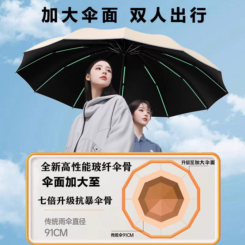 24骨全自动雨伞女晴雨加固折叠抗风男遮太阳伞防晒紫外线加大号厚