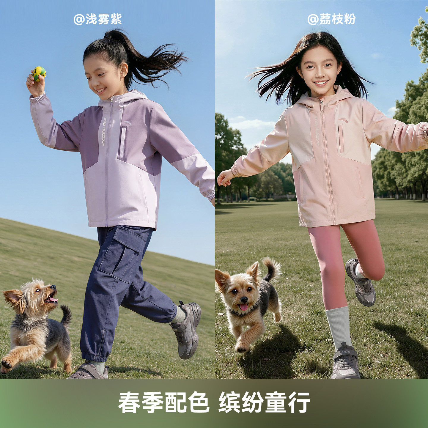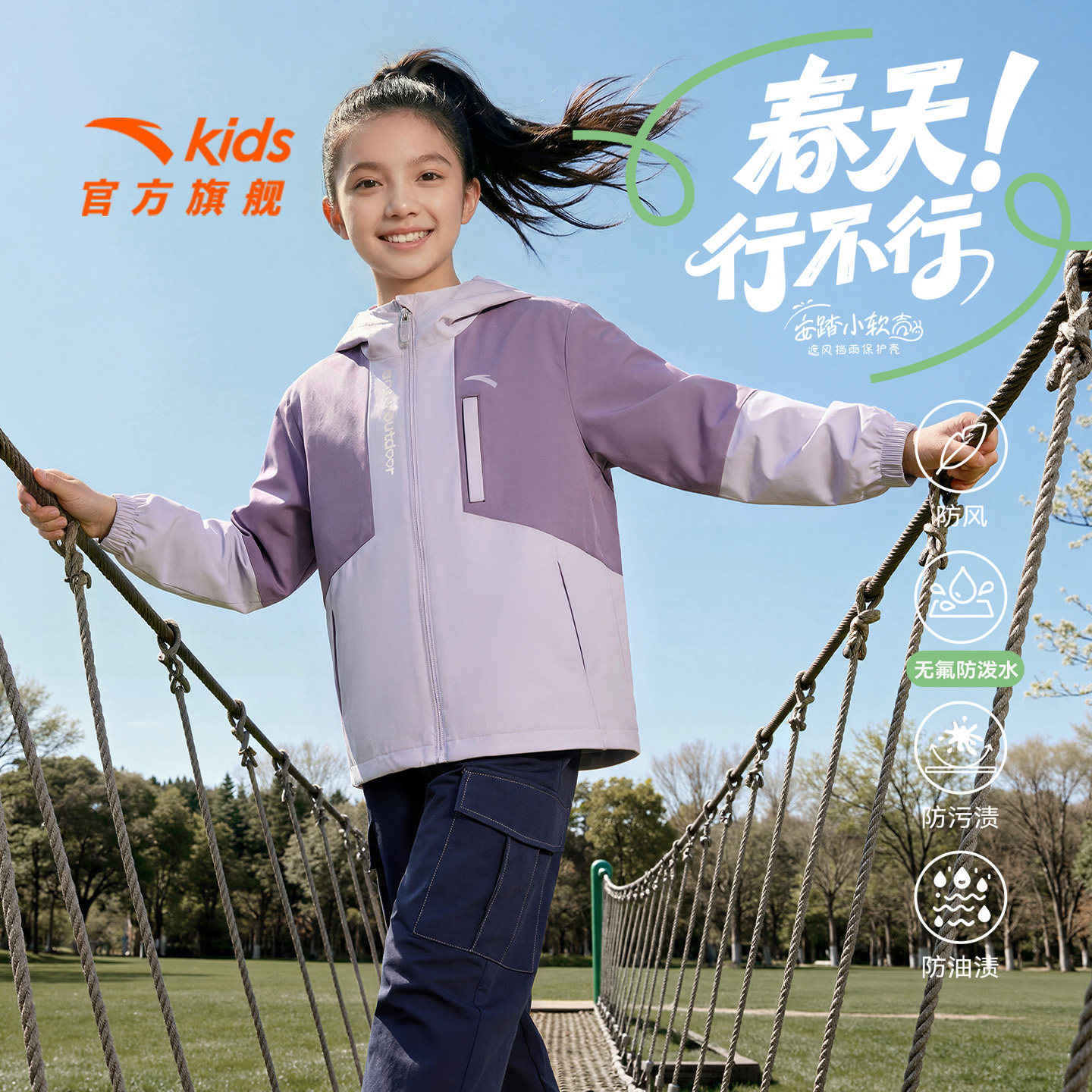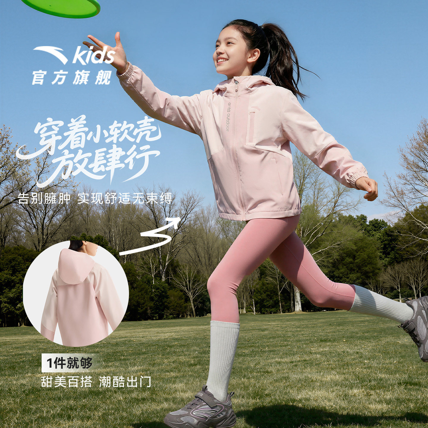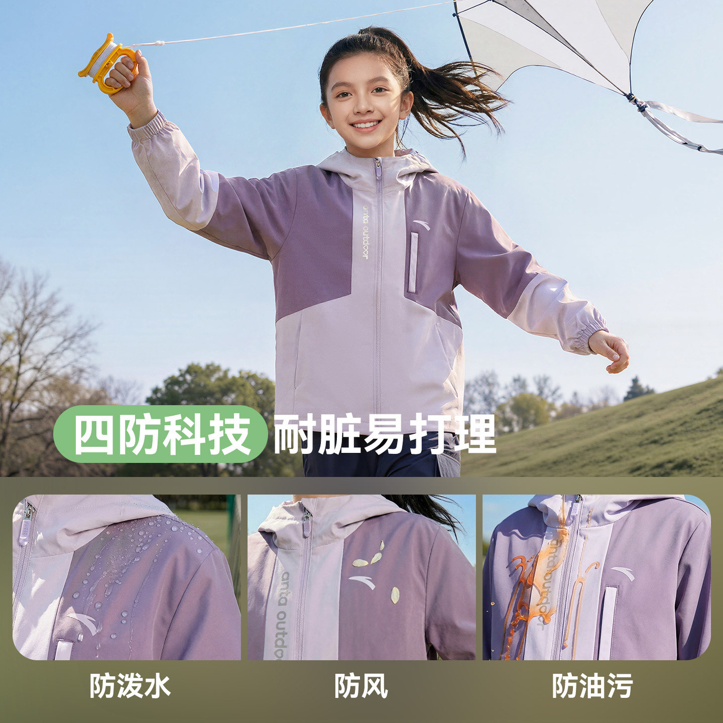 安踏儿童女童户外上衣春季新款三合一四防水风摇粒绒连帽外套潮流
