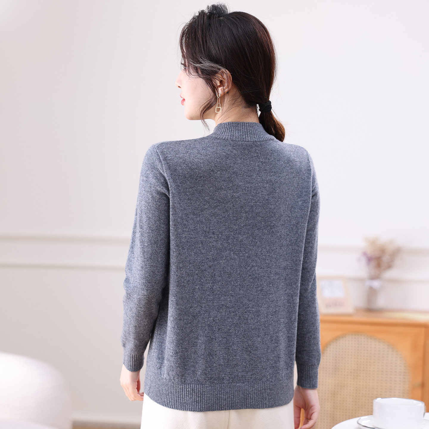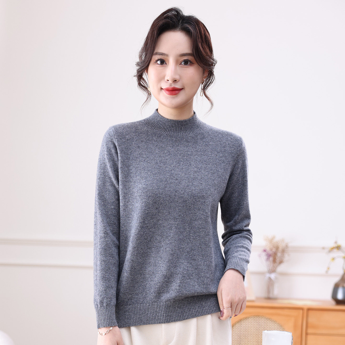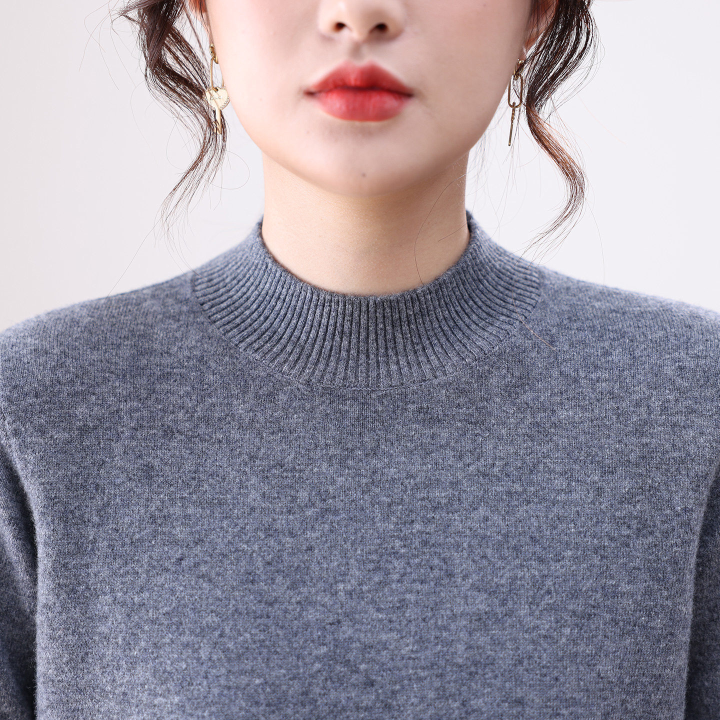 恒源祥纯羊毛衫女装时尚宽松打底衫气质针织衫休闲半高领套头上衣