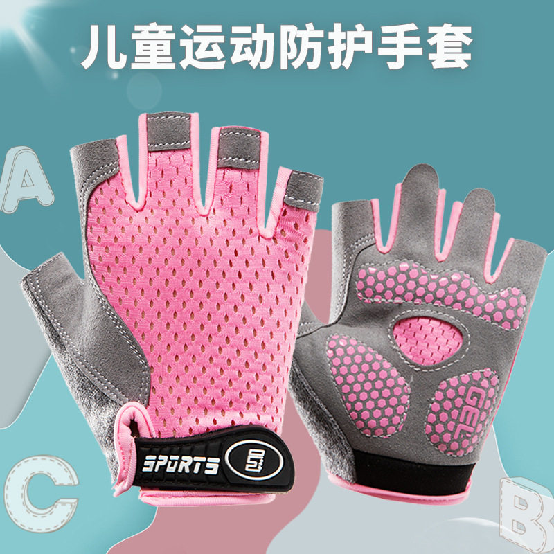 儿童蝶网手套男女骑行单杠锻炼自行车防滑训练轮滑半指运动引体向
