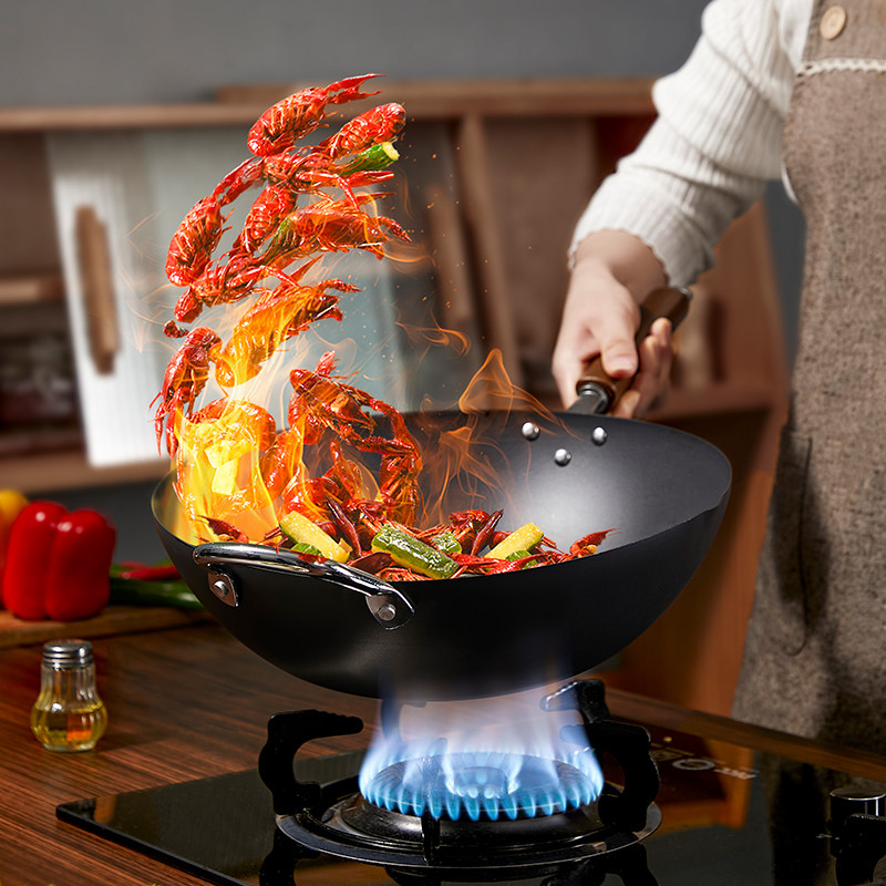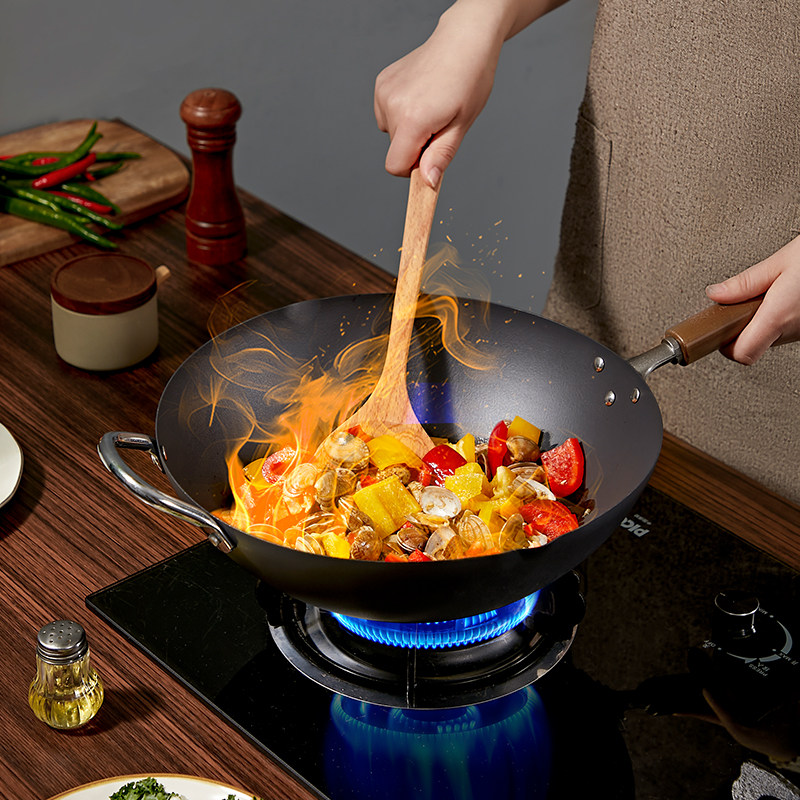 铁锅官方旗舰炒菜锅老式炒锅铁锅家用不粘锅无涂层燃气灶适用