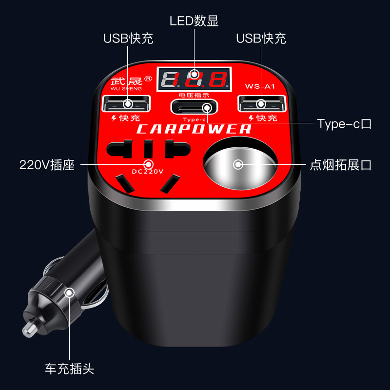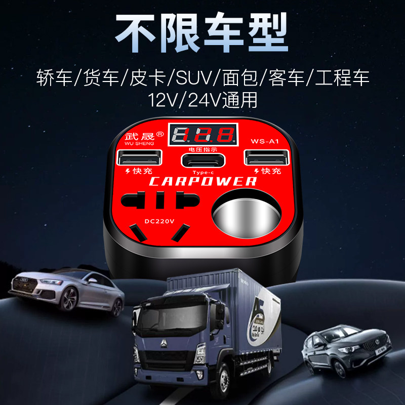 车载逆变器12V24V通用转220V大功率智能充电逆变转换器电源插座