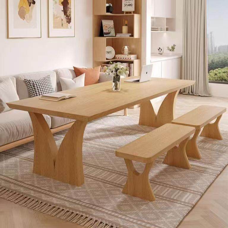 实木双层大长书桌家用客厅板桌办公桌工作台休闲阅读沙发学习桌