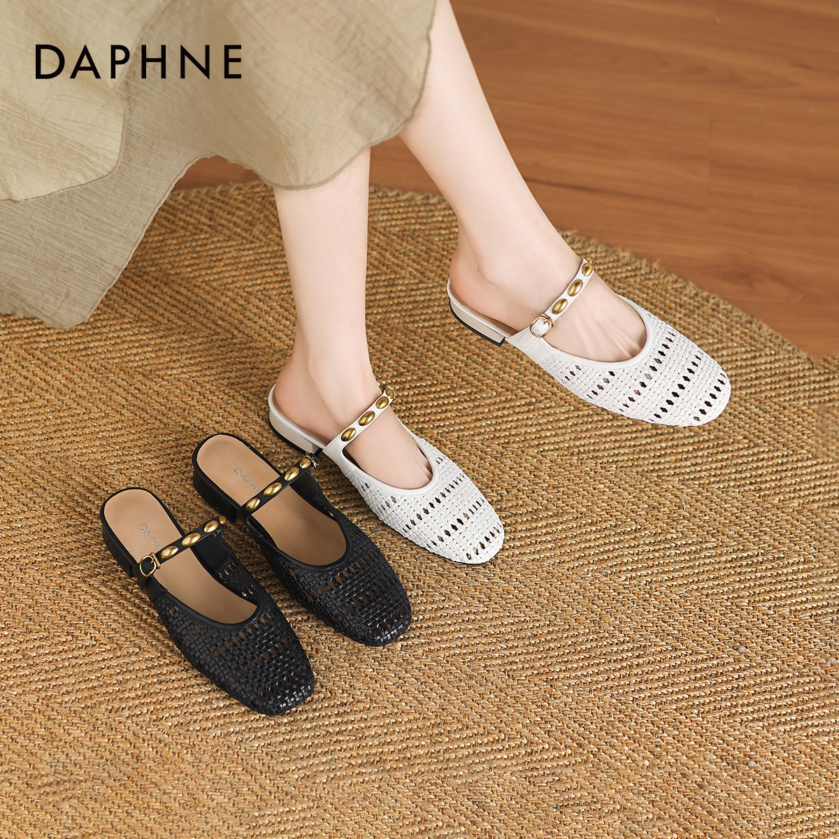 达芙妮波西米亚半拖鞋女外穿夏2026新款镂空凉鞋包头穆勒凉拖鞋子