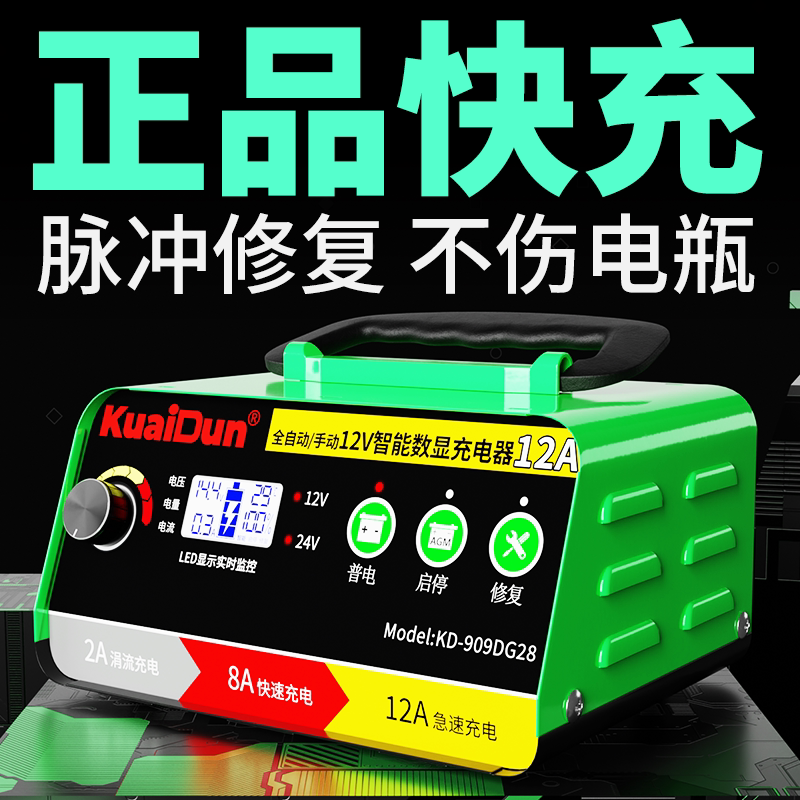 大功率电瓶充电器12V/24V通用微电脑修复智能脉冲充满自停