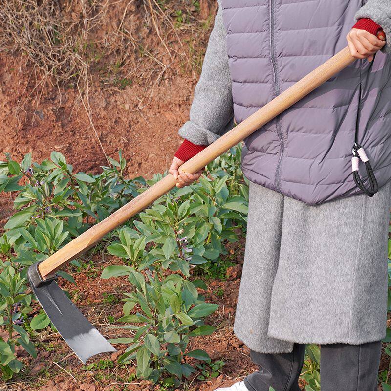 挖土锻打锄头工具锄头老式全钢农用种植田木柄耙种菜除草翻地户外