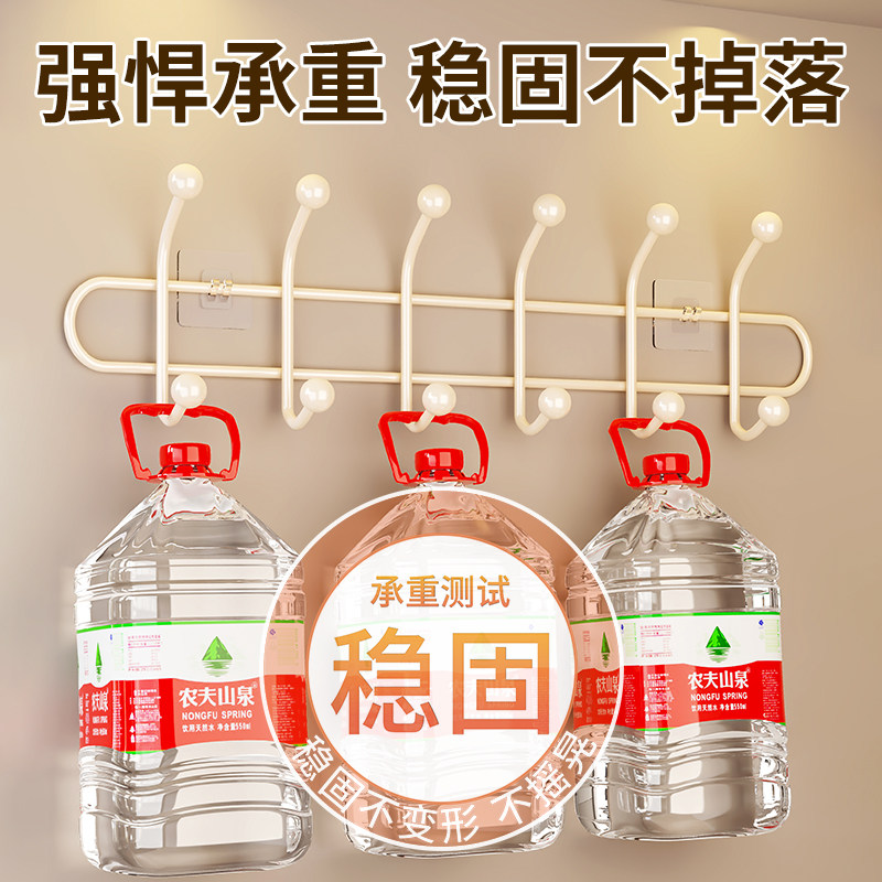 透明连排挂钩六连挂强力粘胶不掉落收纳壁挂无痕免打孔门后粘钩