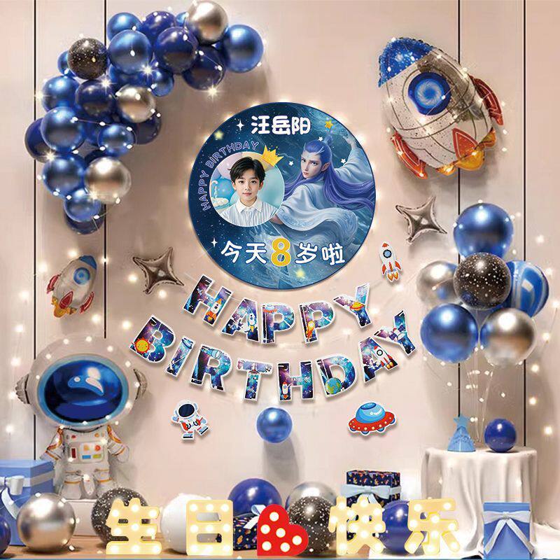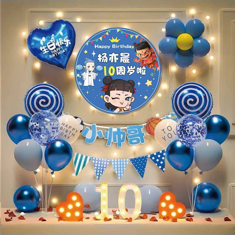 哪吒主题宝宝生日海报布置装饰场景男孩女孩周岁宴气球派对背景墙