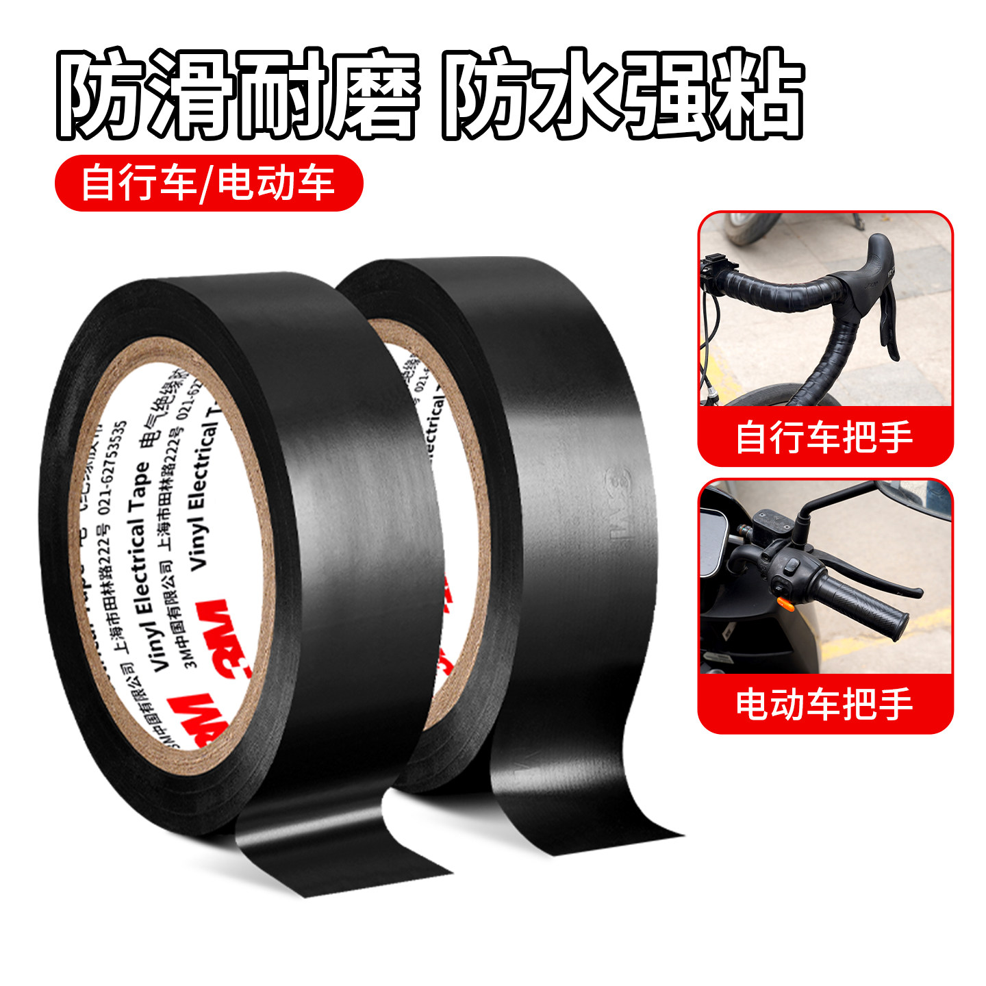 3M车手把缠绕带电动车手把套电瓶车羽毛球网球拍封口胶公路车手柄耐磨防滑自粘汽车方向盘翻新通用弯把缠带
