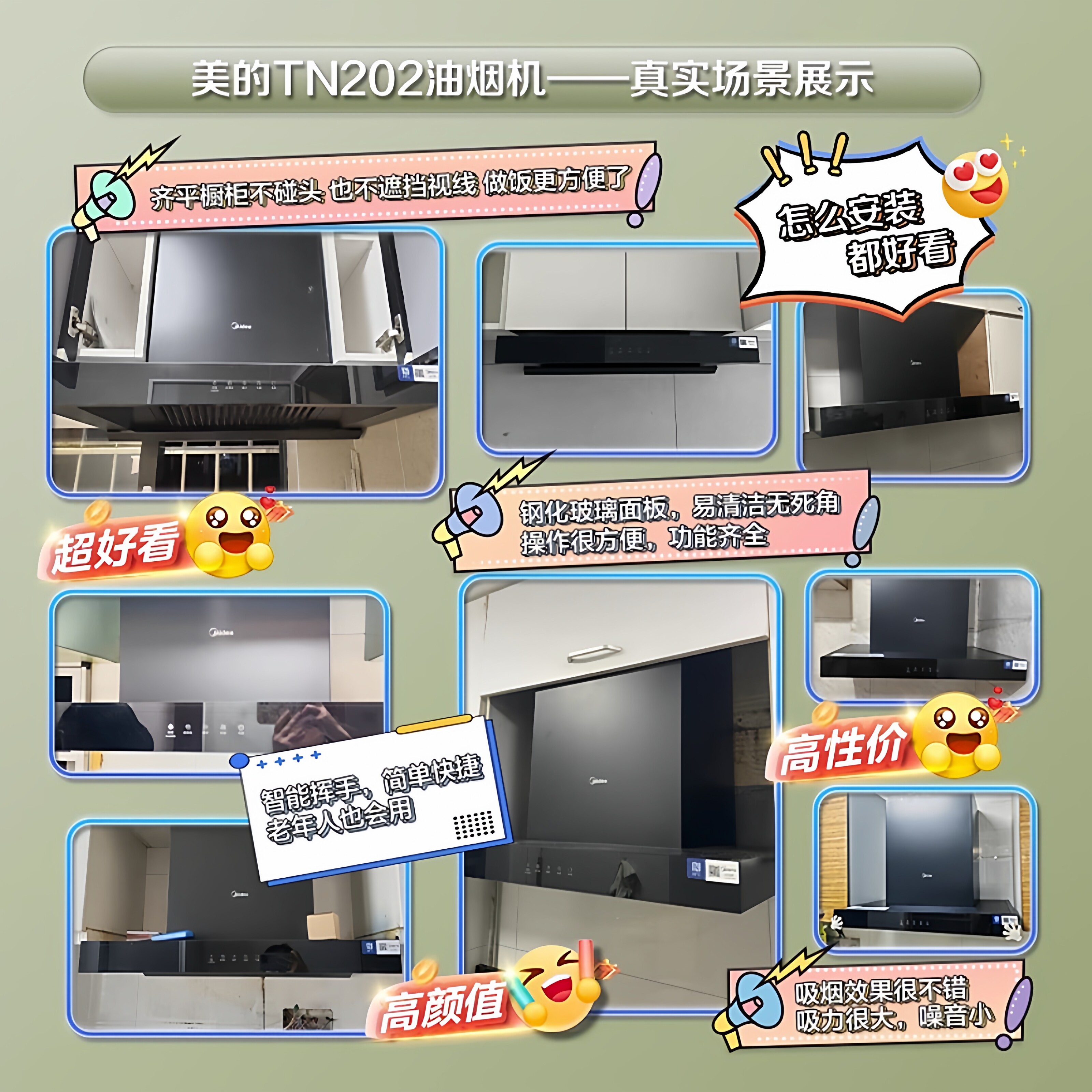 美的官方欧式顶吸抽油烟机TN202厨房家用大吸力700mm小尺寸自净洗