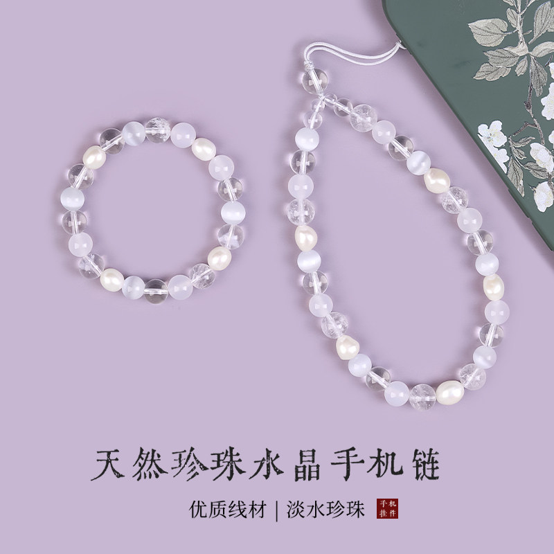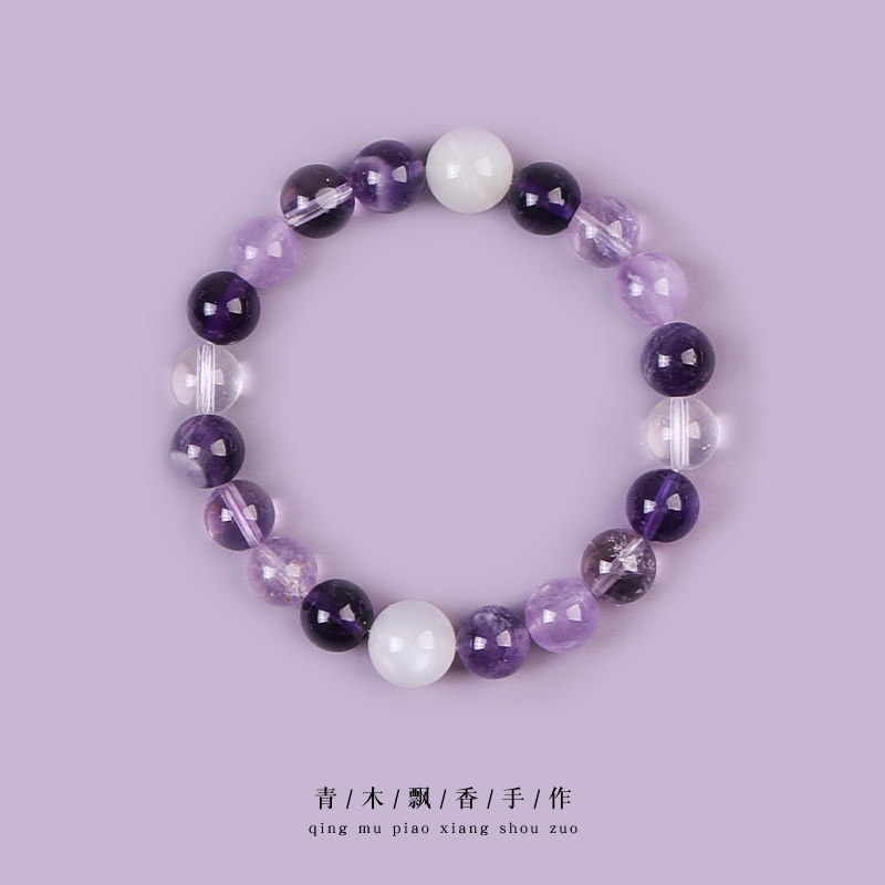 天然白水晶珍珠手串紫水晶手链原创设计款轻奢小众手链生日礼物