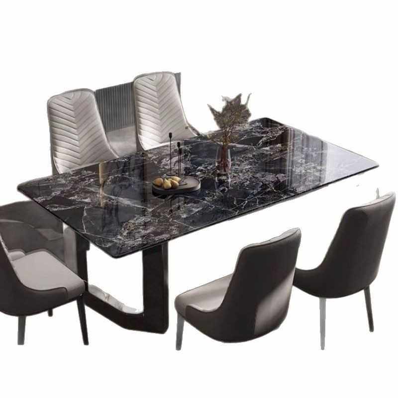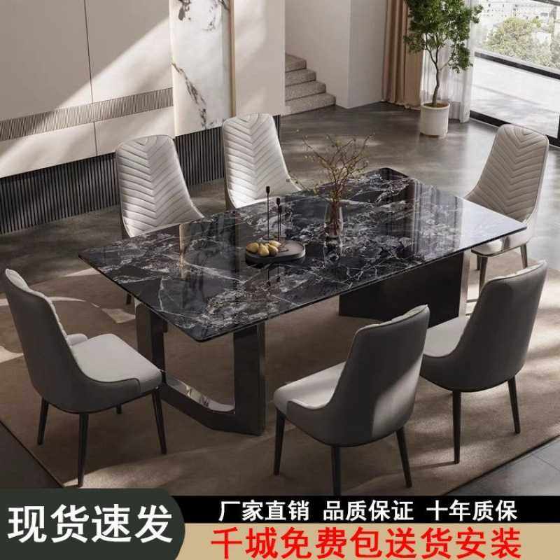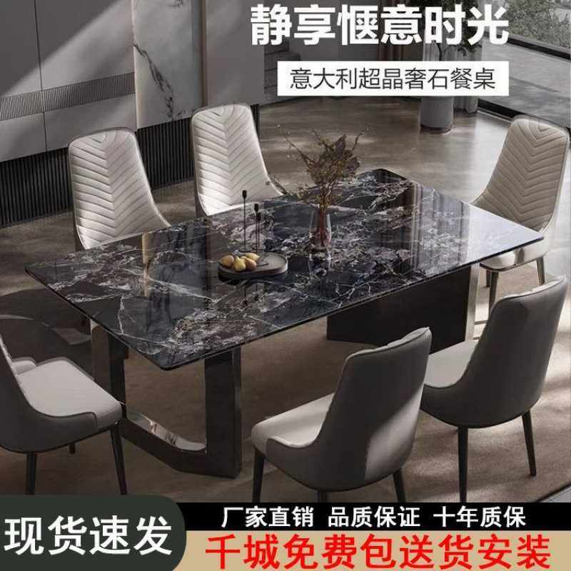 轻奢超晶石现代高端简约桌椅组合长方形家用饭桌亮光大理石餐桌