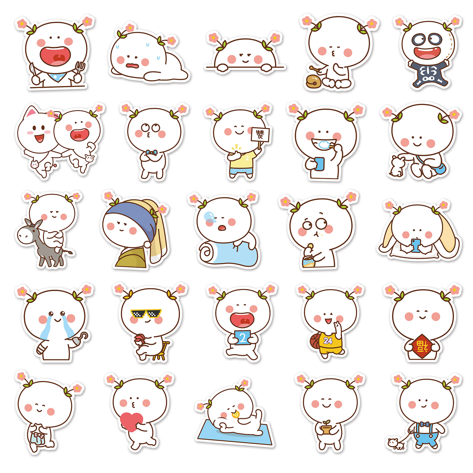 103张二花贴纸自行车笔记本电脑旅行箱自行车滑板冰箱汽车头盔装饰卡通可爱防水表情包涂鸦个性创意涂鸦贴画