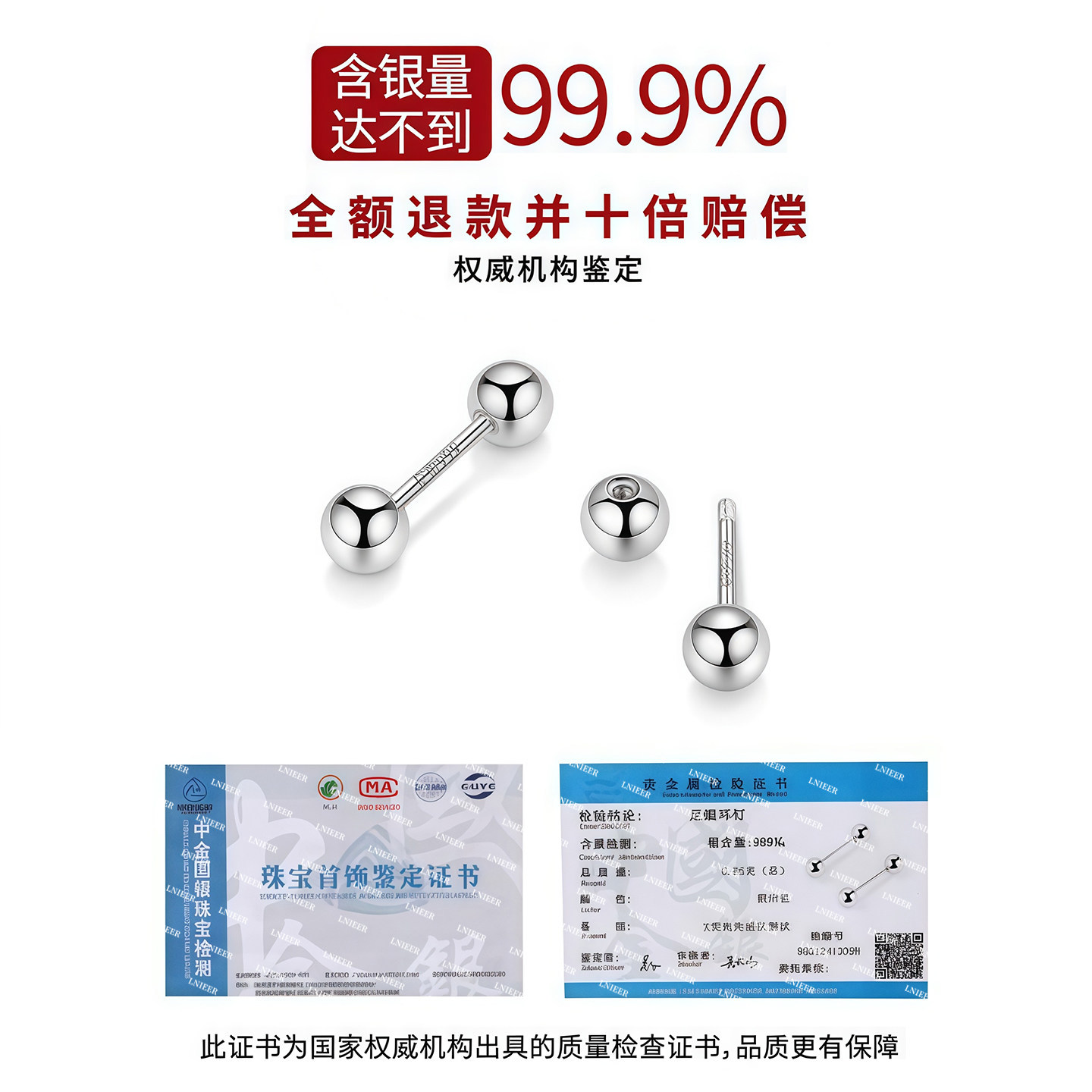 fever同款珍珠耳钉999纯银施家耳环2025新款爆款高级轻奢正圆耳饰