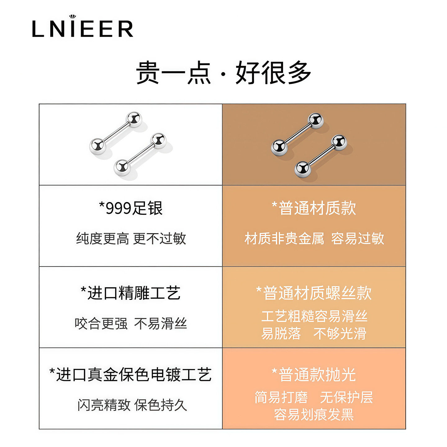 S999纯银双头耳钉螺丝拧扣耳环养耳洞免摘耳棒耳骨钉足银不掉色