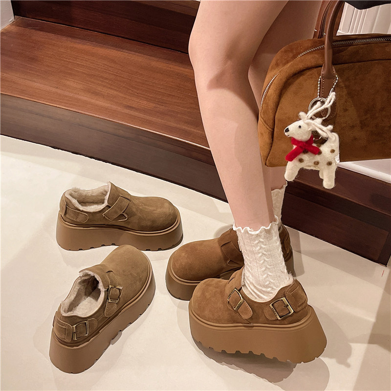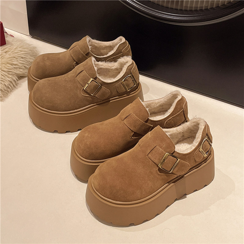 松糕厚底增高勃肯鞋女鞋2025新款秋冬雪地靴加绒乐福鞋毛毛二棉鞋