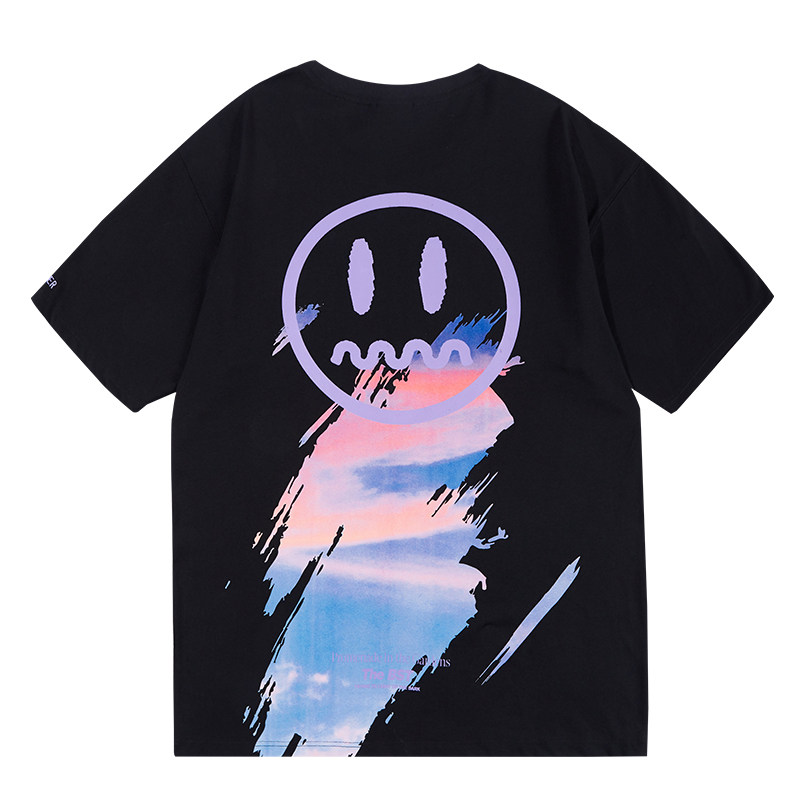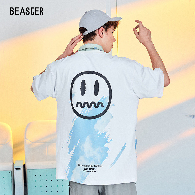 BEASTER小恶魔笑脸短袖T恤潮牌天空印花宽松潮流纯棉夏季半袖ins