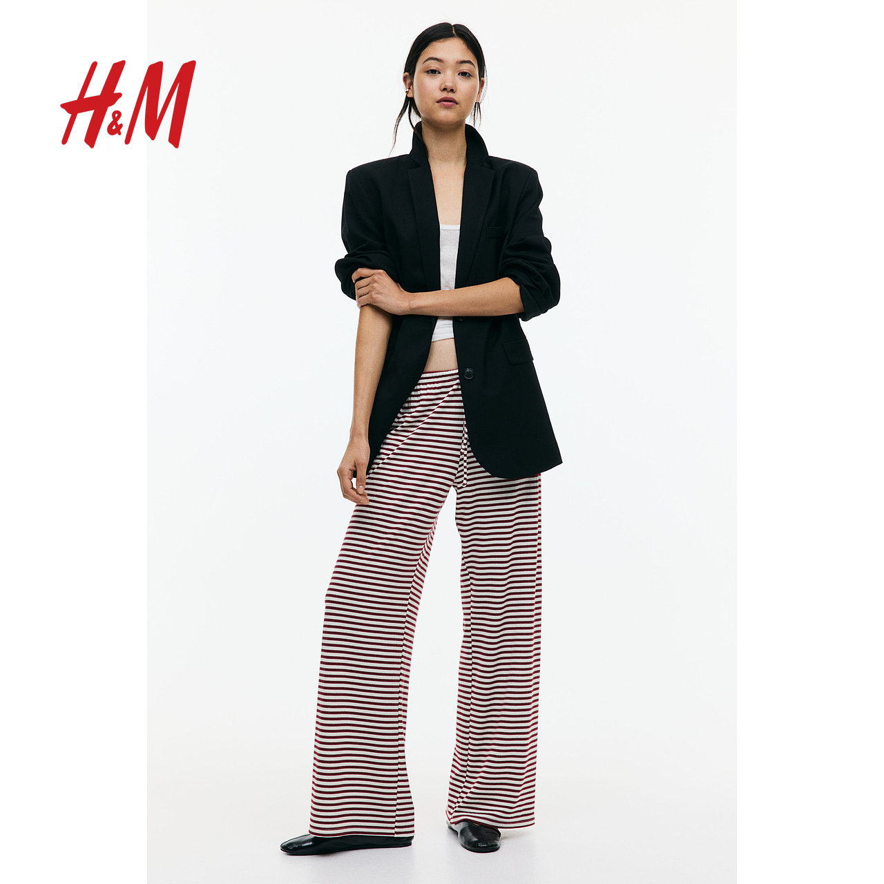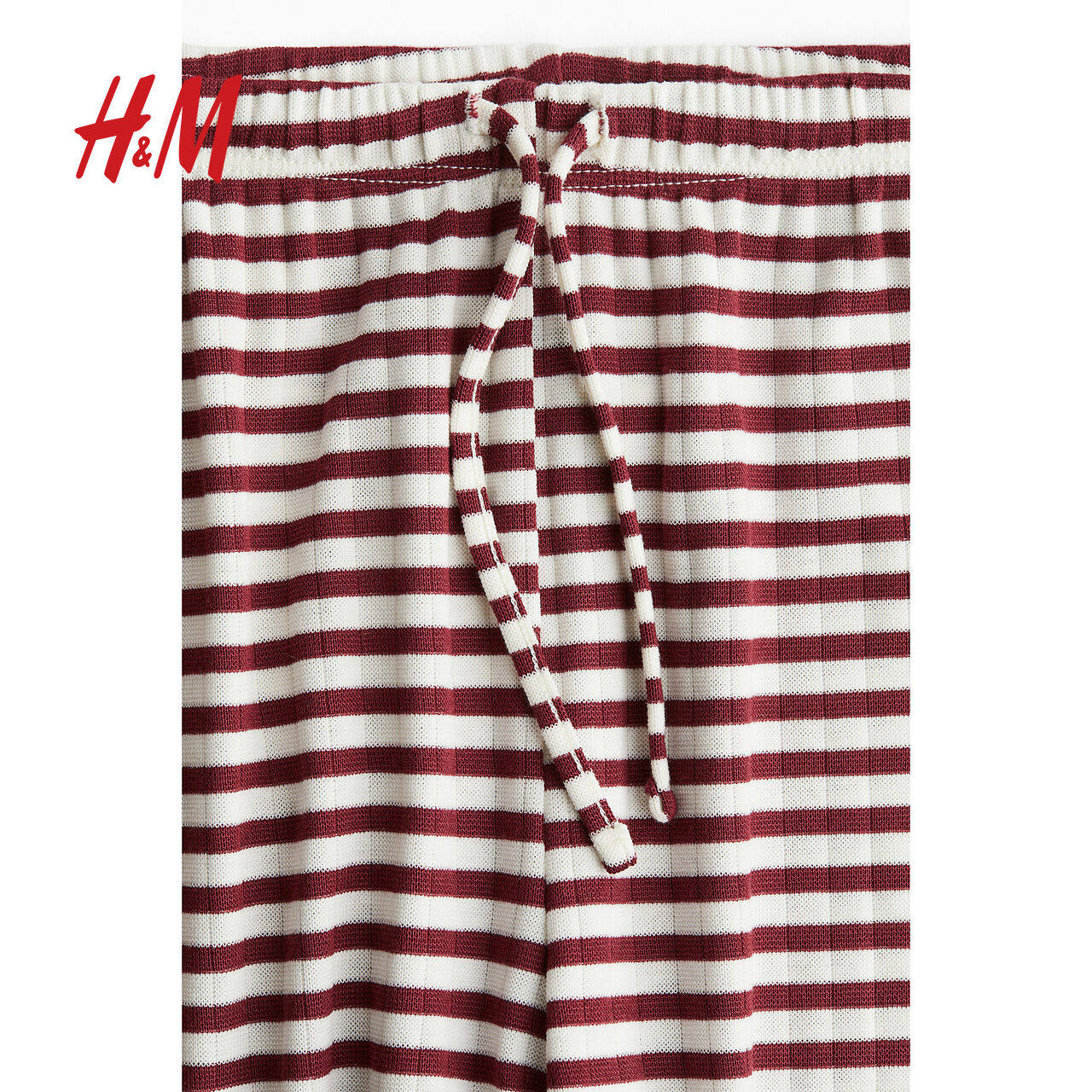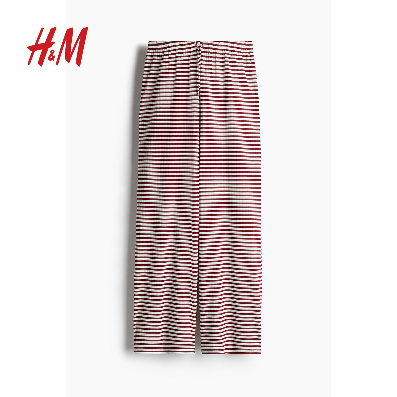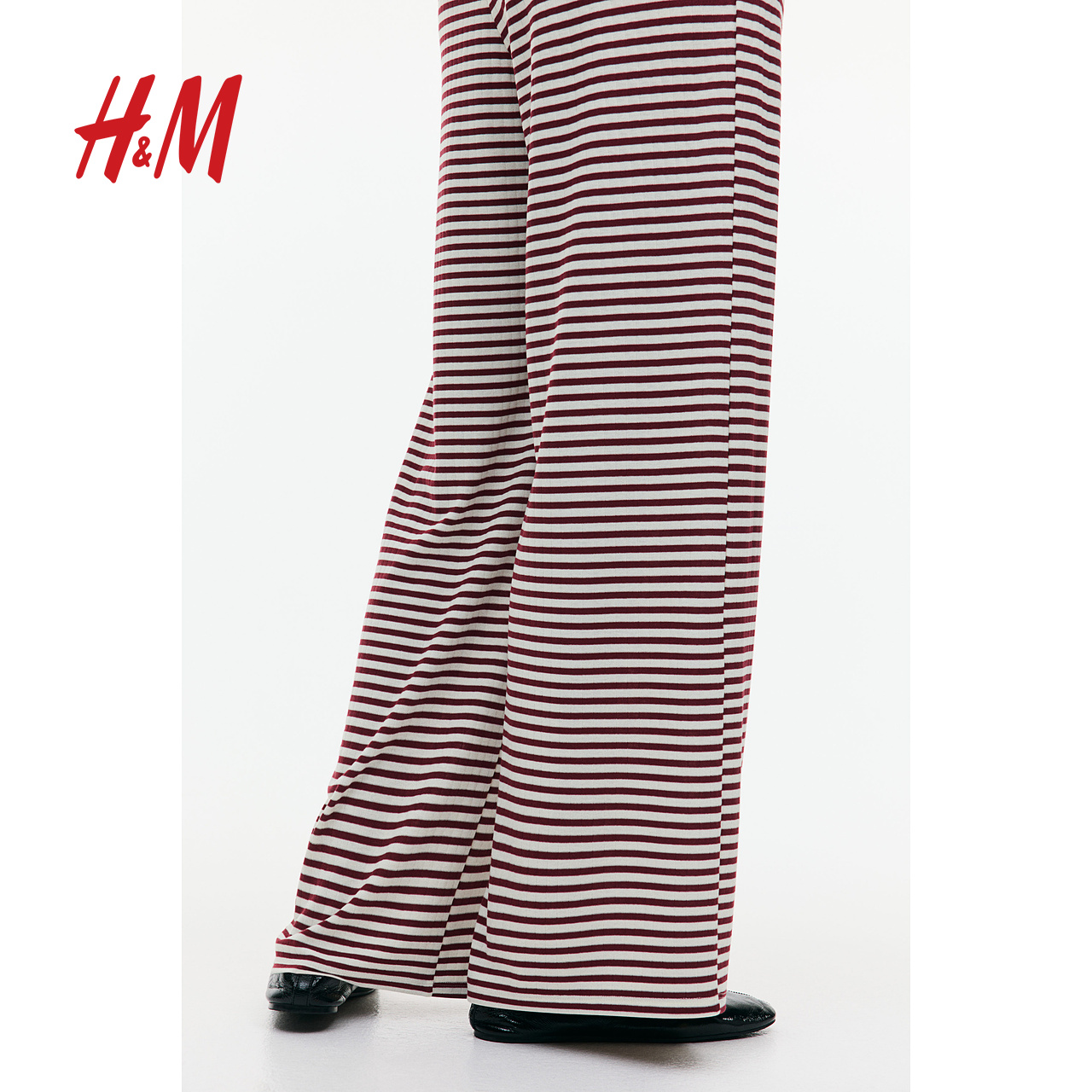 HM女装休闲裤春季抽绳休闲简约潮流酒红色阔腿裤1259462
