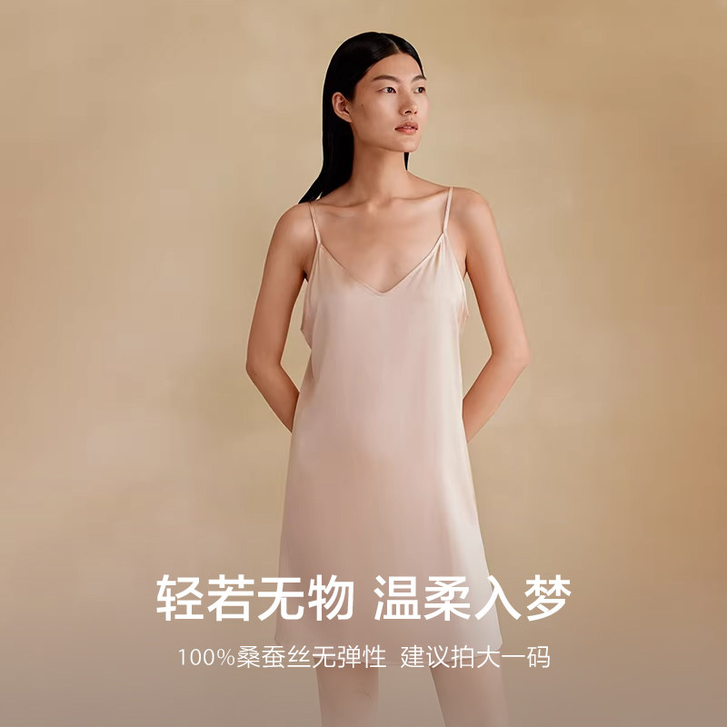 万事利纯色简约真丝睡衣女V领性感可内搭上衣女丝绸吊带睡裙之夏