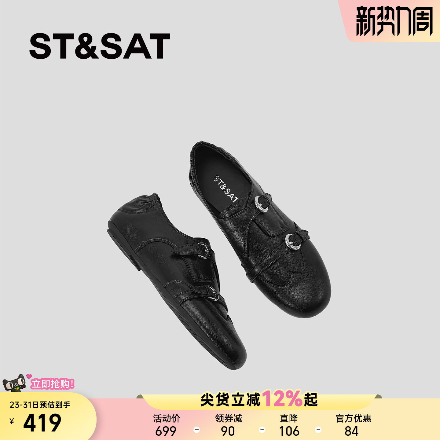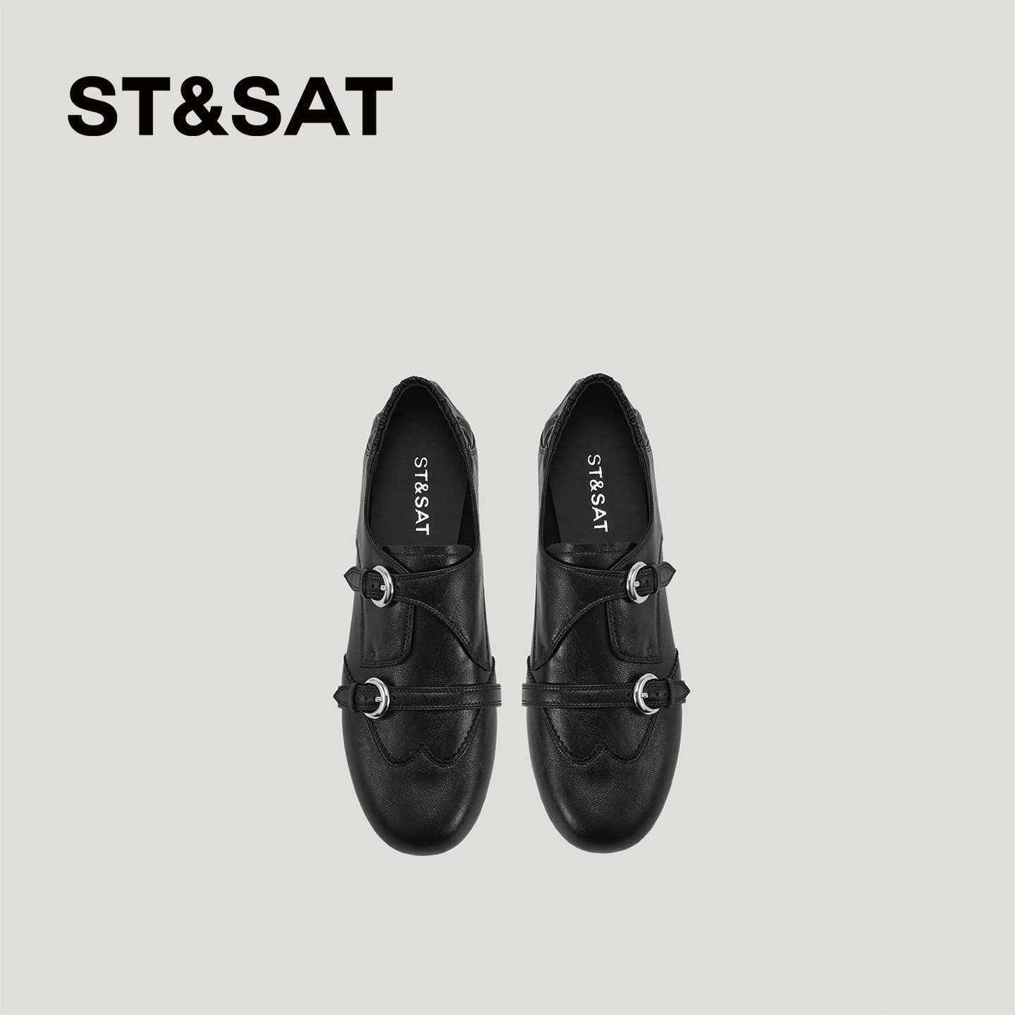 星期六英伦风布洛克鞋女2026巨好看新款圆头平底软底皮带扣单鞋春