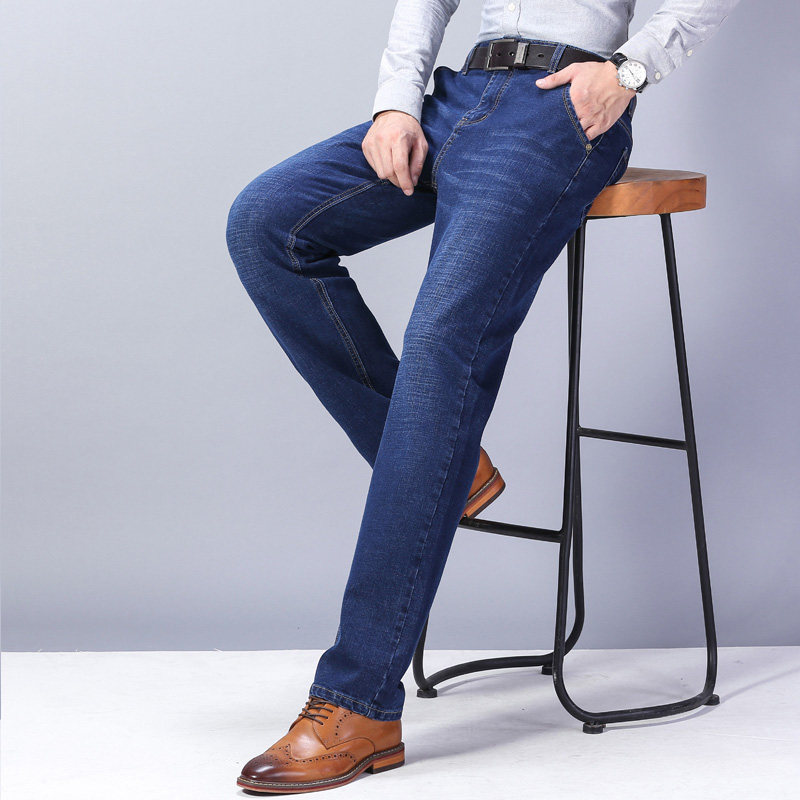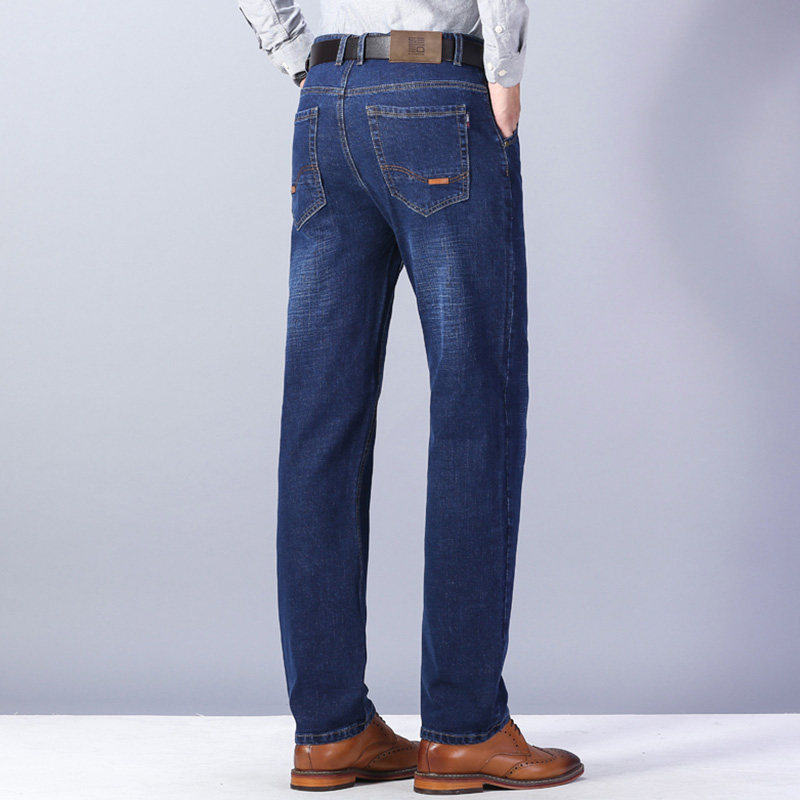 圣得西男士直筒高腰牛仔裤2025冬款中青年百搭弹力加厚休闲长裤