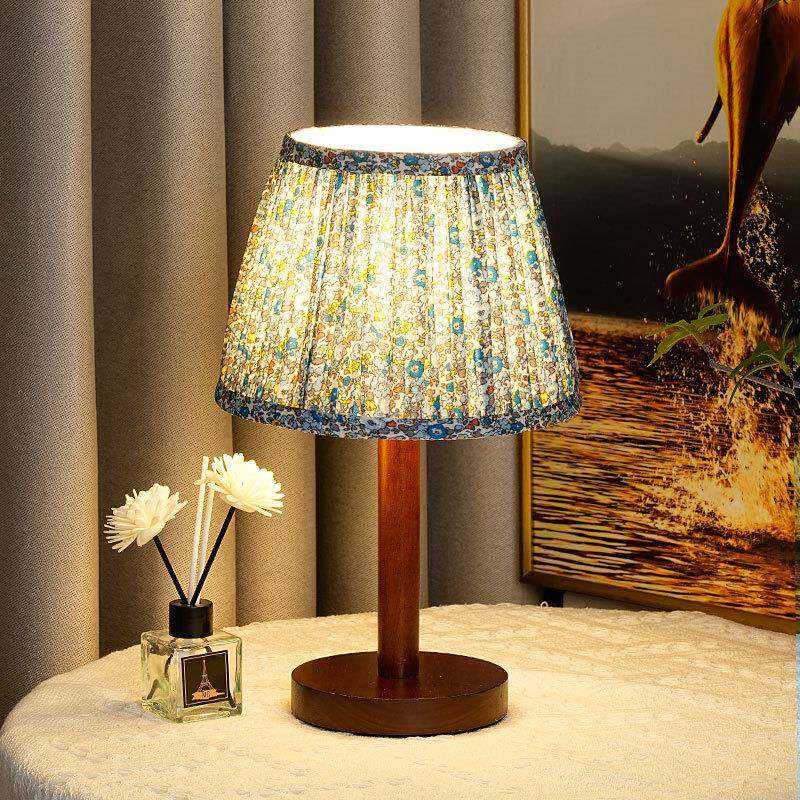 复古碎花实木台灯小清新卧室床头小夜灯法式浪漫氛围感布艺装饰灯