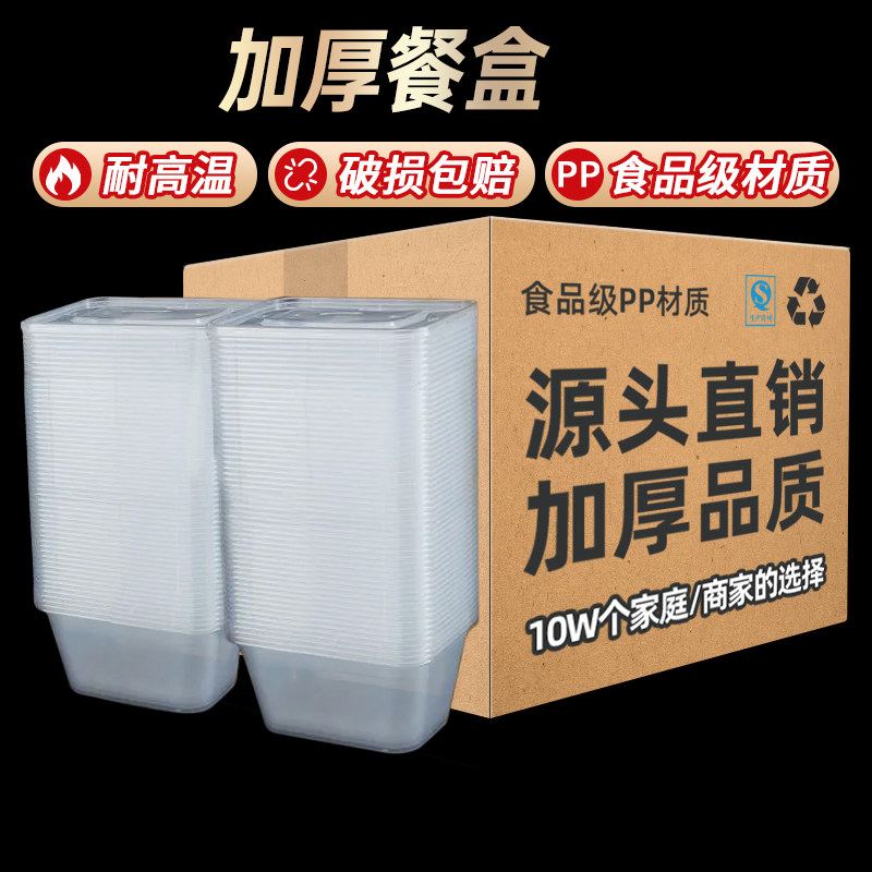 一次性饭碗餐盒打包盒食品级加厚商用外卖餐具家用饭盒塑料盒带盖