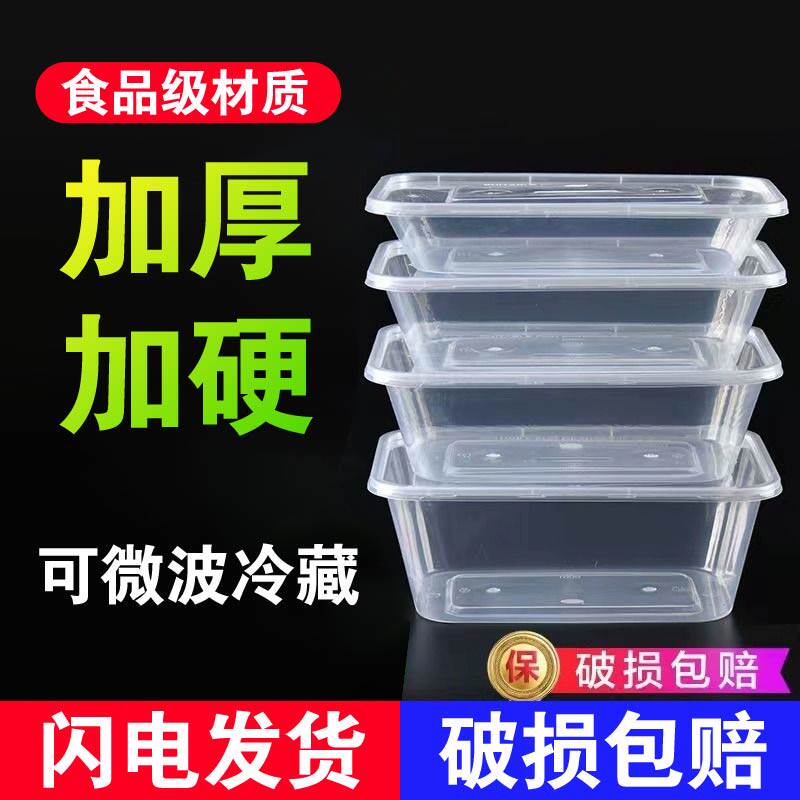 一次性餐盒500/1000ml长方形加厚方盒商用塑料透明外卖饭盒打包盒
