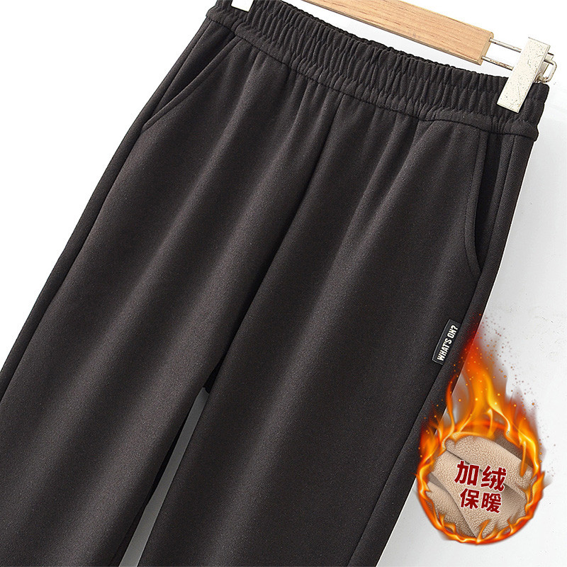梨型身材微喇休闲裤女2025秋冬加绒胖妹妹mm高腰弹力显瘦运动卫裤