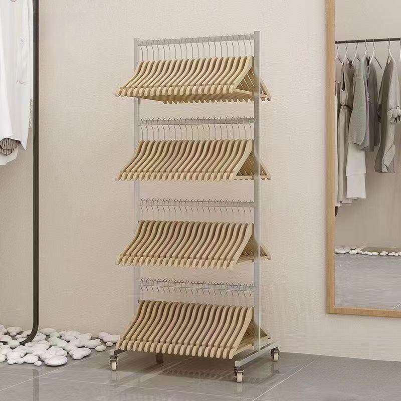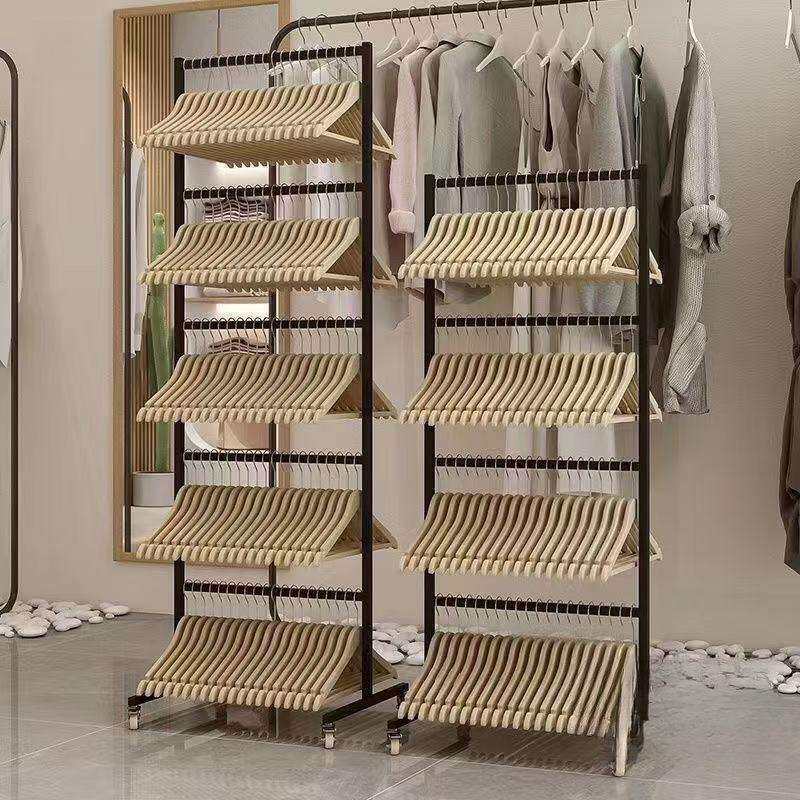 不锈钢服装店放衣架收纳架可移动收纳童装衣服架子多层裤夹收纳神