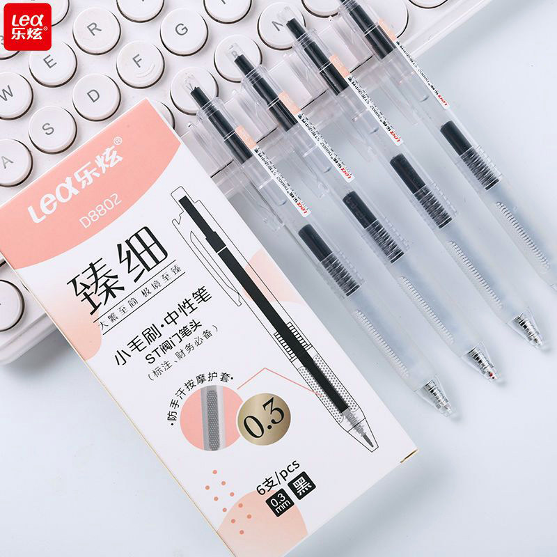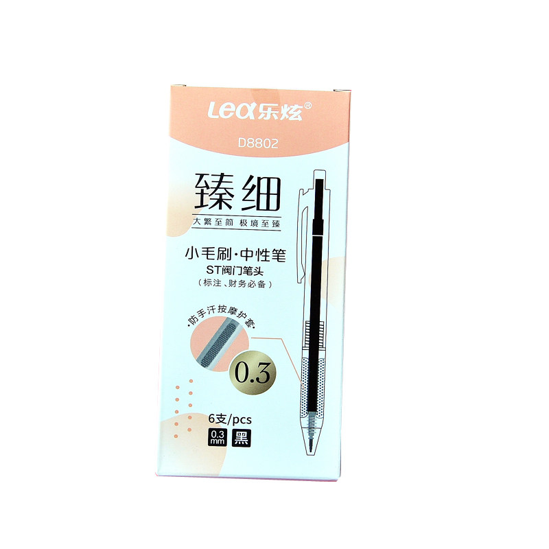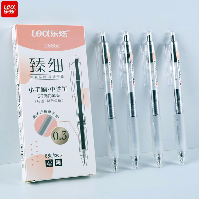 乐炫臻细小毛刷0.3mm中性笔ST阀门笔头按动刷题笔黑色财务必备