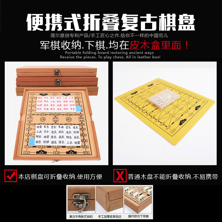 便携式军棋陆战棋大号实心麻将料军旗套装折叠收纳棋盘学生成人