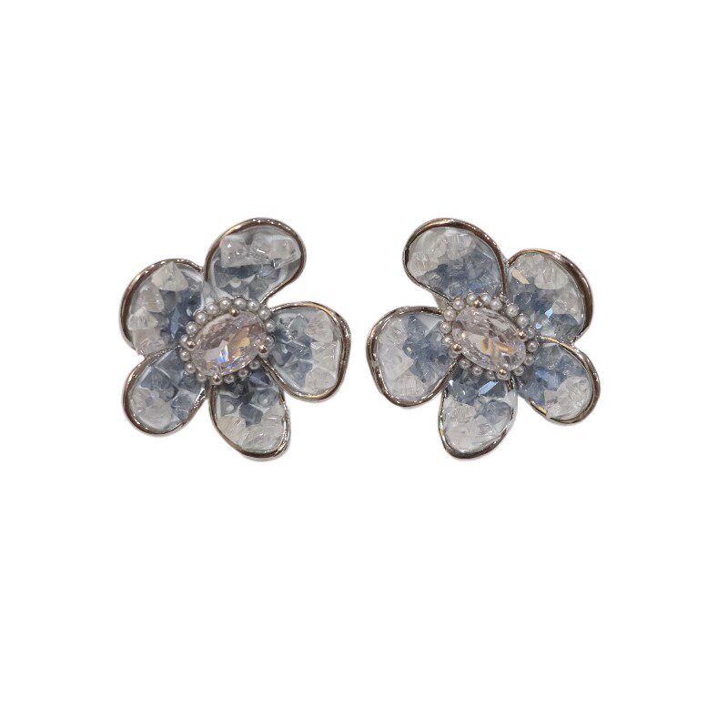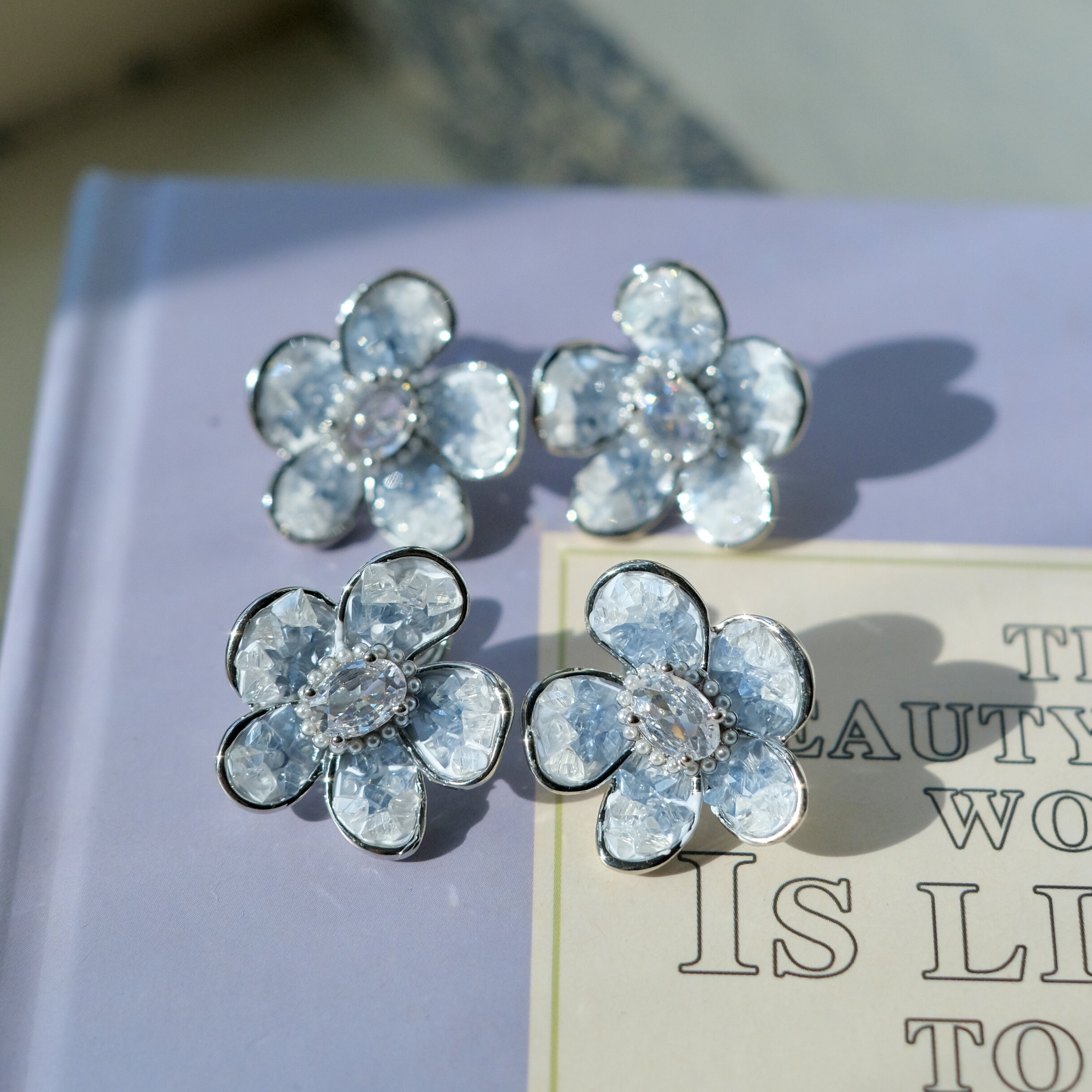 《雪境之花》仙气温柔夏天蓝色水晶花朵小众高级感气质耳环耳夹女