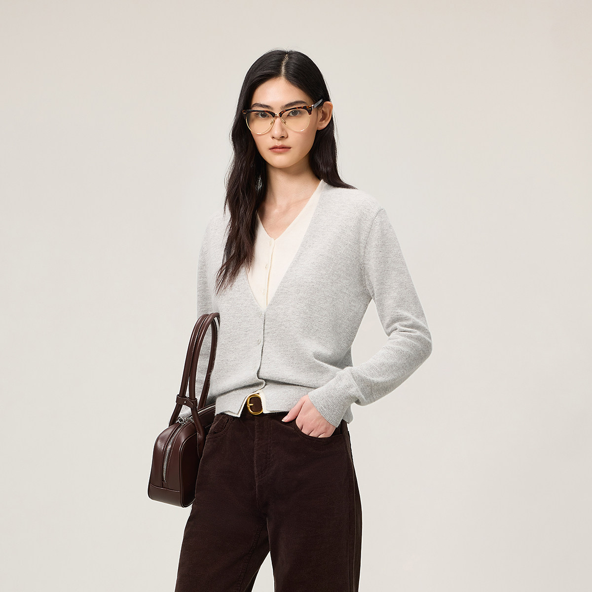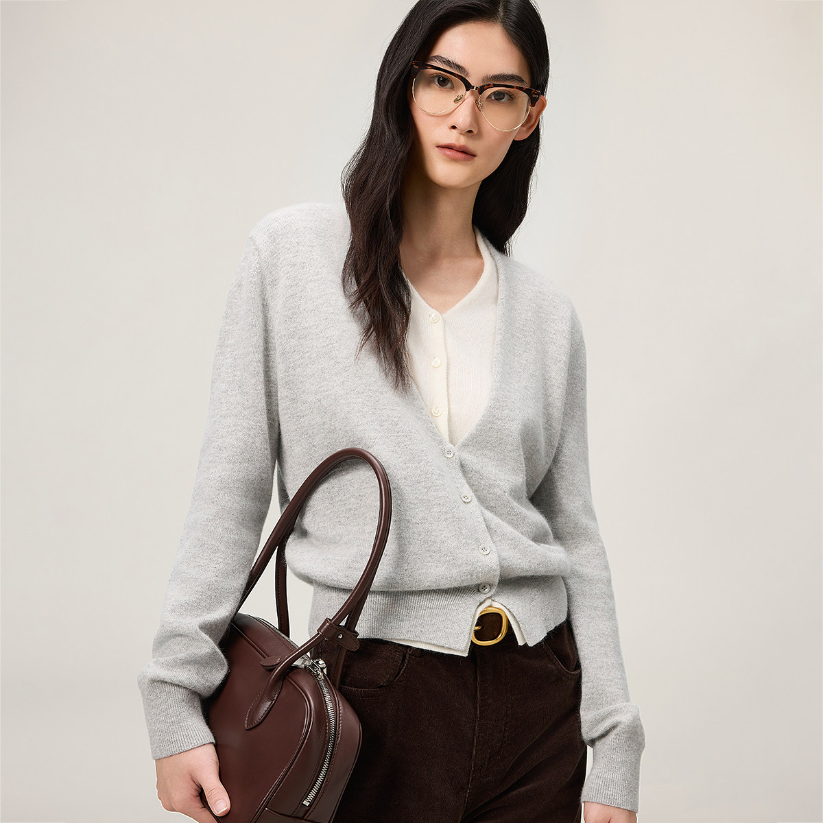 【季末折扣】欧时力 兔绒假两件V领针织外套开衫软糯2025秋冬新品