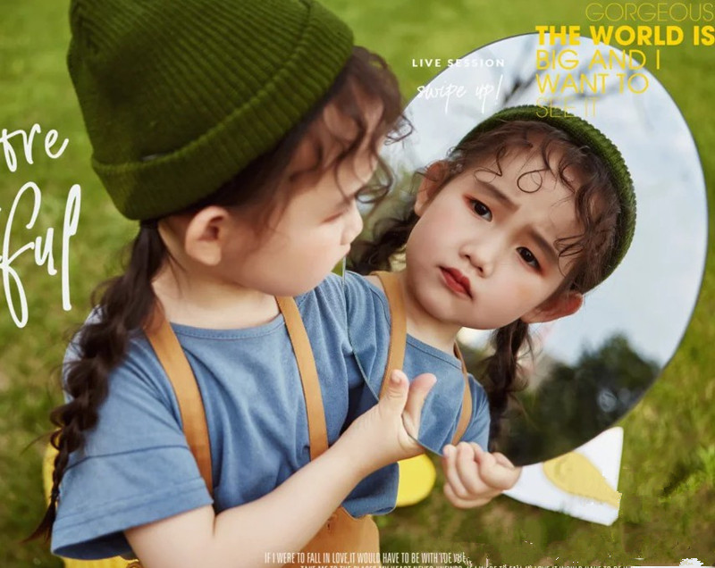 新外景创意个性儿童拍照黄色笑脸毯子宝宝写真摄影道具镜子卡纸